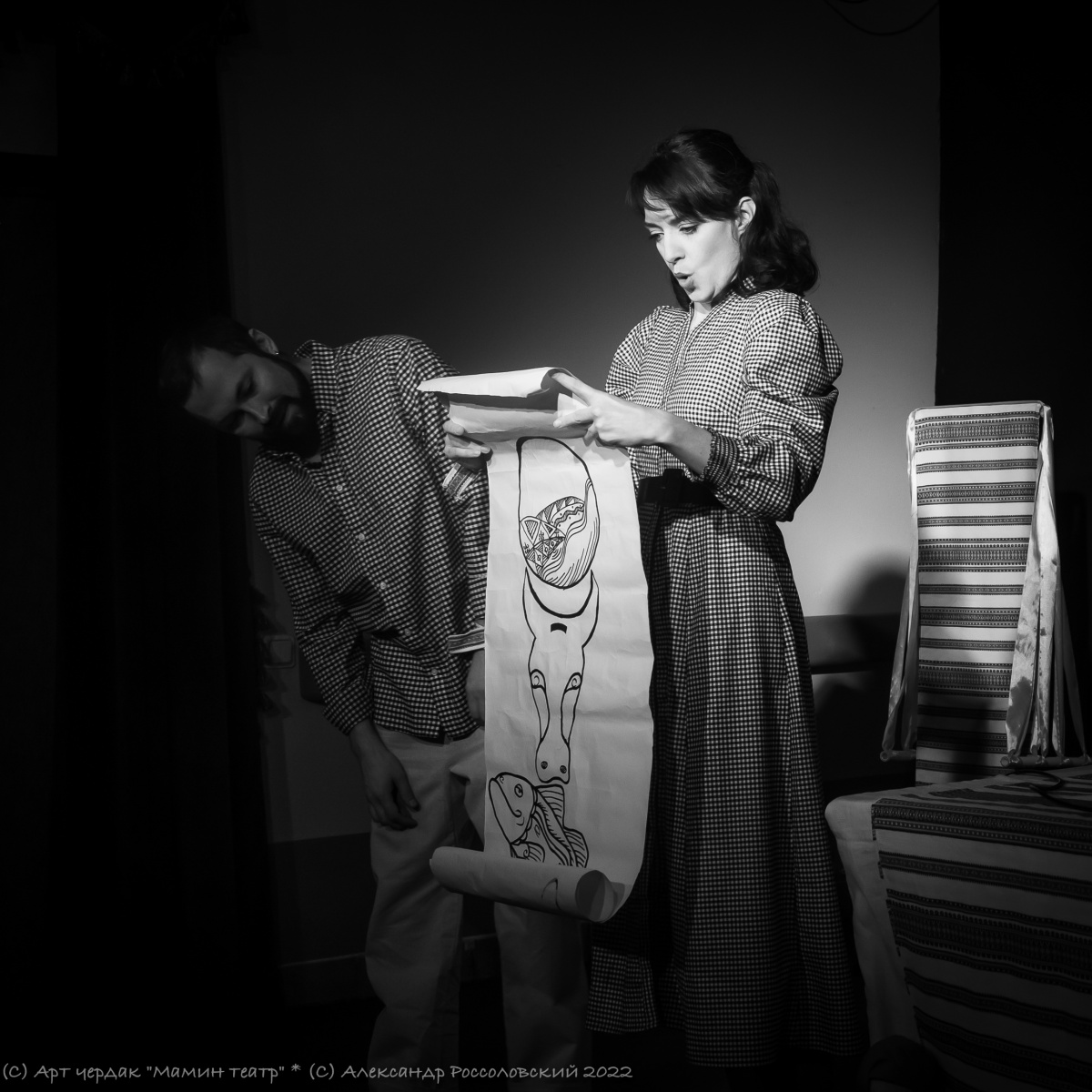 В спектакле приняла участие труппа Арт-чердака "Мамин театр" (Автор: Д.Витан, В.Галсанова, Режиссёр: Д.Витан, В.Галсанова; в ролях: Д.Витан/В.Витан, В.Галсанова).