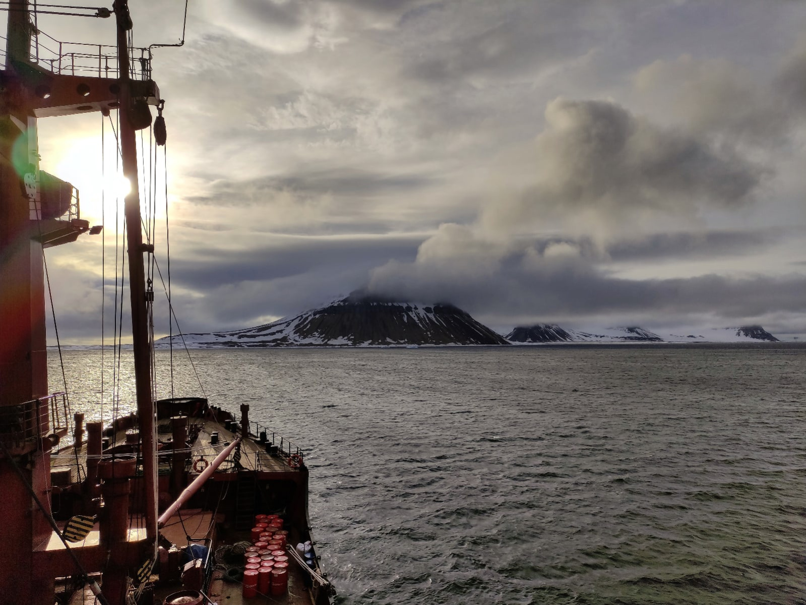 "Помимо собственной программы исследования я был в составе и других исследовательских групп. К примеру, совместно с аспирантом Института физики атмосферы РАН Александрой Нарижной и студентами Северного Арктического федерального университета велись непрерывные наблюдения за потоками солнечной радиации, длинноволнового излучения морской поверхности и метеорологическими параметрами. Для этих целей на палубе судна в начале рейса мы смонтировали специальное актинометрическое оборудование. Было не просто придумать, как это сделать. Но в итоге получилась идеальная для этих целей конструкция.