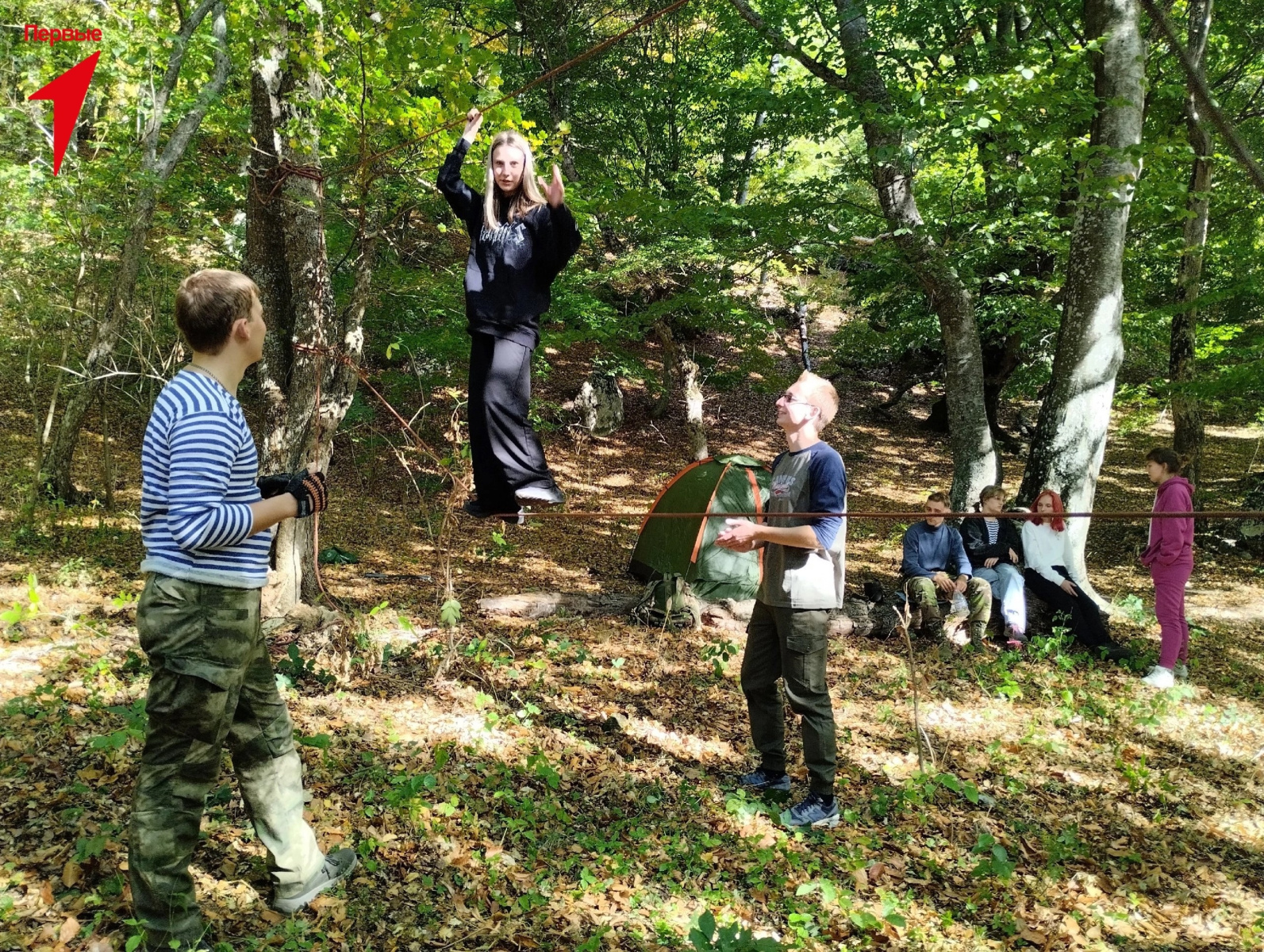 Расположившись на тур стоянке, студенты соорудили небольшую переправу между двух деревьев и опробовали на ней свои силы. А вечер закончился полевым ужином в приятной компании.