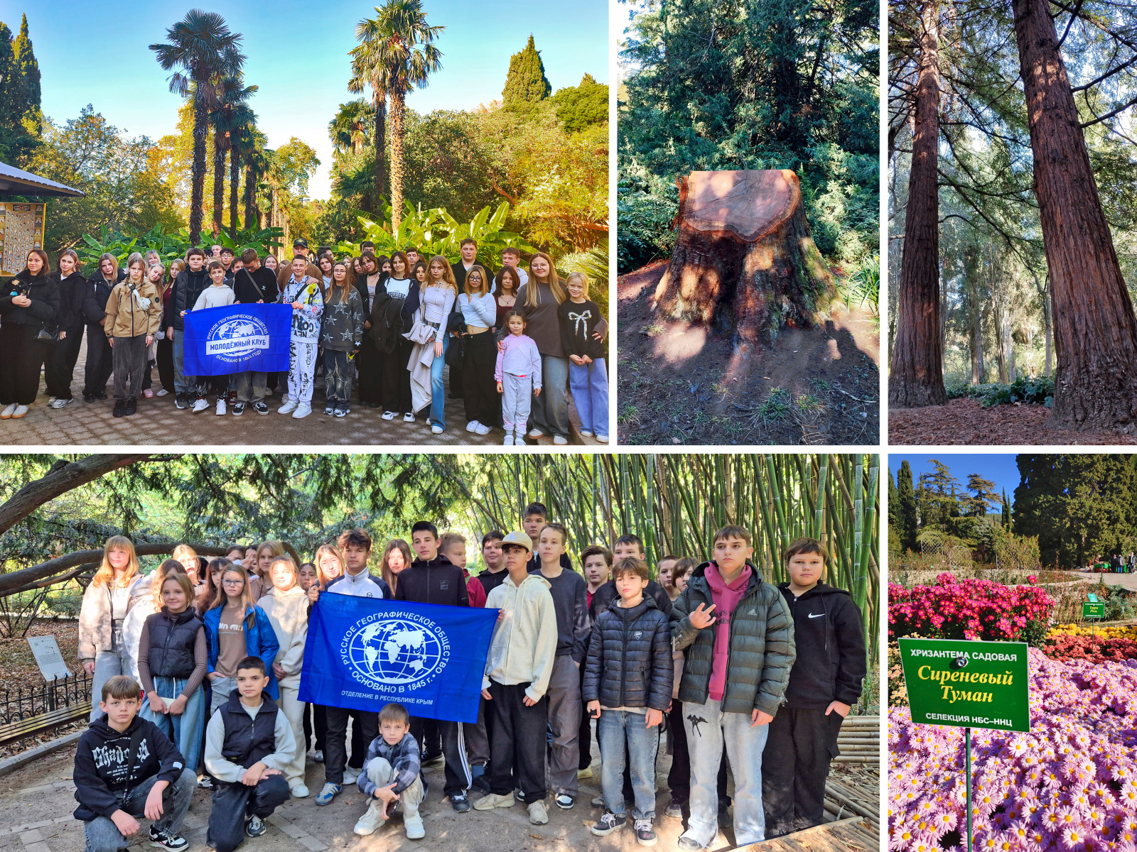 Программа началась с посещения Никитского ботанического сада. Школьники прогулялись по тенистым аллеям, увидели величественные секвойи, ягодный тис, раскидистые платаны и древнюю фисташку, являющуюся памятником природы. Особый интерес вызвал Падуб остролистный (остролист) – кустарник, из которого, была сделана волшебная палочка Гарри Поттера. Школьники прошли через бамбуковую рощу, увидели банановое дерево, лавр и земляничник с его удивительной корой. Ярким событием экскурсии стал знаменитый «Бал хризантем», где было представлено более 400 сортов этих осенних цветов.