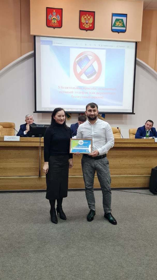Ольга Ровкина вручила благодарности краевой детско-юношеской общественной организации "Азбука туризма" молодым депутатам Северского района Георгию Попову, Арсентию Матюшенко, Анне Игнаткиной и Михаилу Кунгурцеву за предоставление помощи в приобретении смывочных средств для участников федерального природоохранного проекта "Чистые горы".