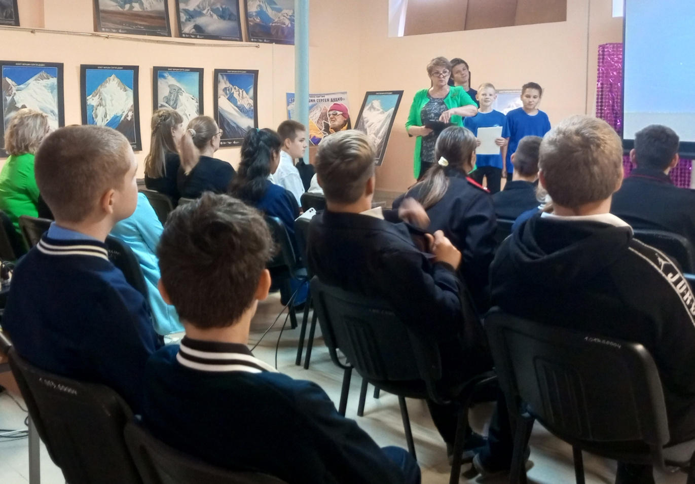 В кинолектории приняли участие депутаты Совета и администрация Куринского сельского поселения, директор дома культуры, член РГО Инна Заборовская, активисты Молодежного клуба РГО "ЭКОСфера" и учащиеся средней школы №25 станицы Куринской, педагоги школы и жители станицы. Также прошла экскурсия по выставке "Букет вершин Сергея Дудко".