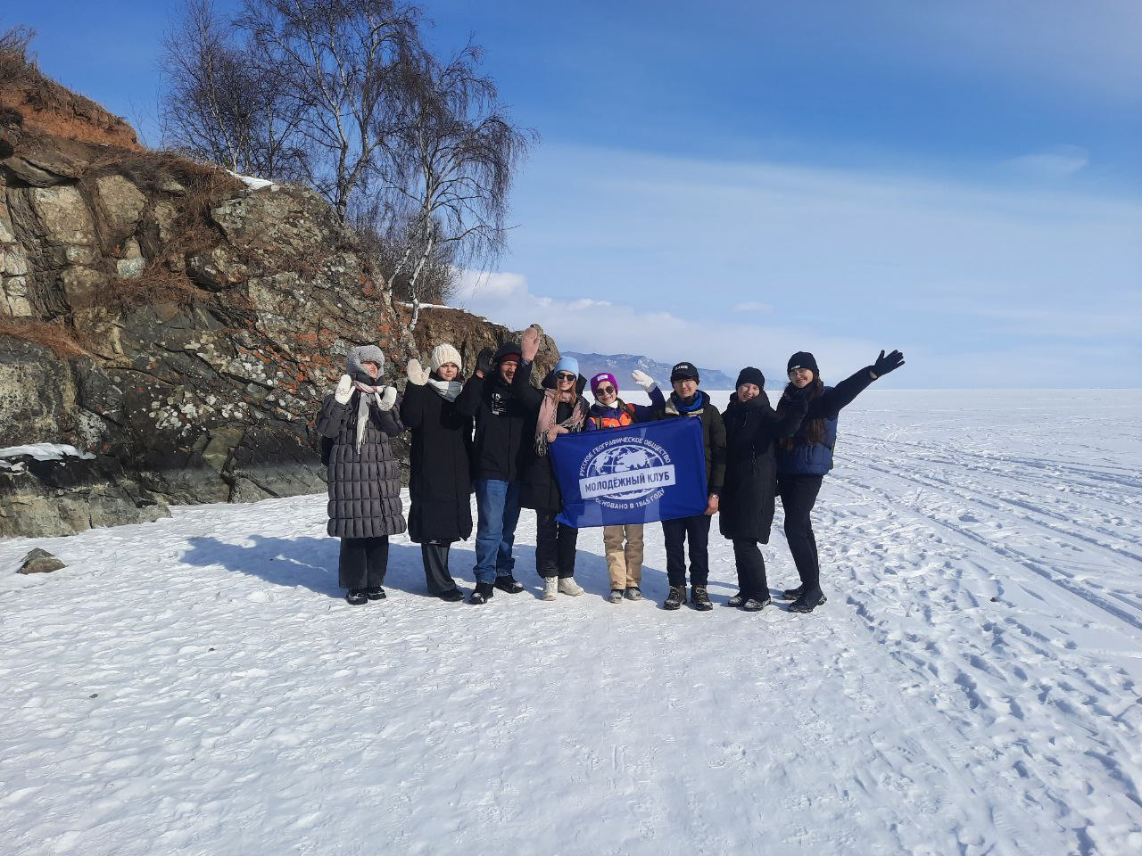 Переход по льду Байкала с посещением живописного памятника природы регионального значения "мыс Шаманский" совершил актив Молодежного клуба РГО "Портулан".
