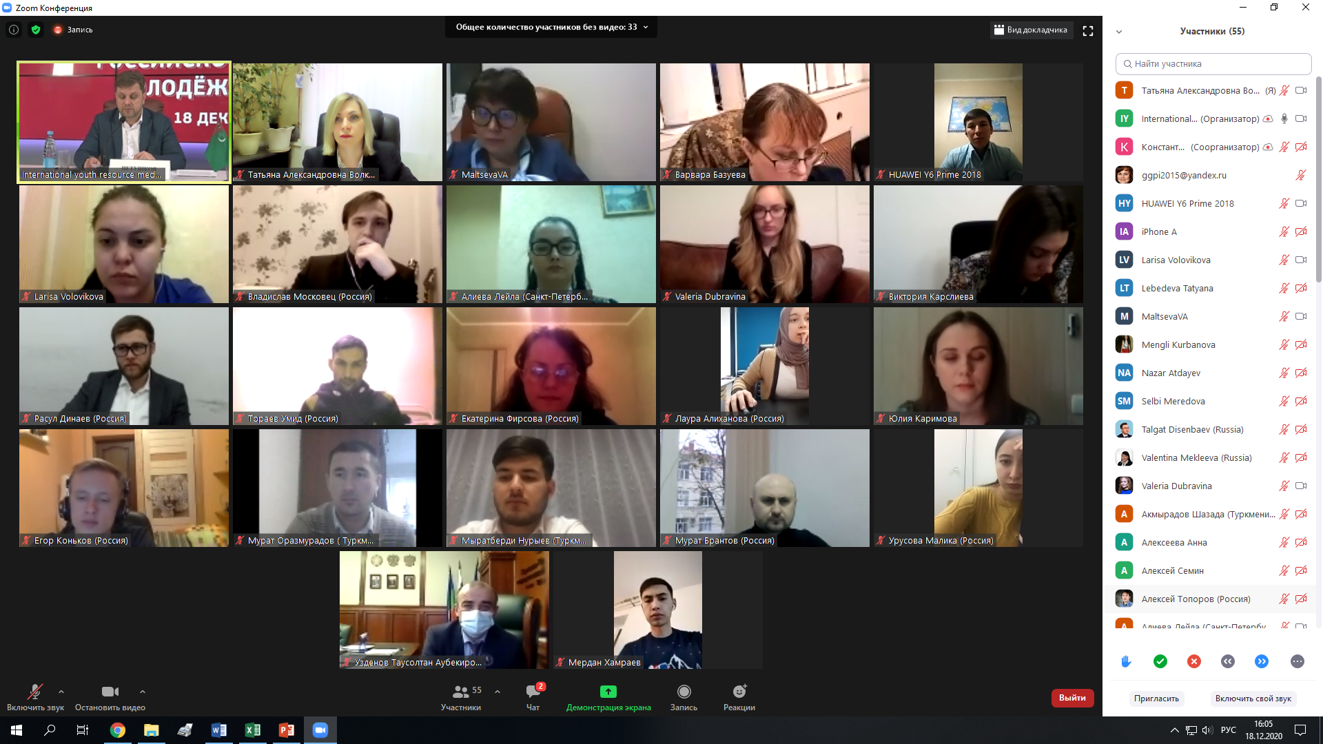 18 декабря 2020 года в онлайн-формате состоялась российско-туркменская молодёжная встреча на тему «Раскрытие потенциала российско-туркменского молодёжного сотрудничества. Возможности для молодёжи России и Туркменистана».