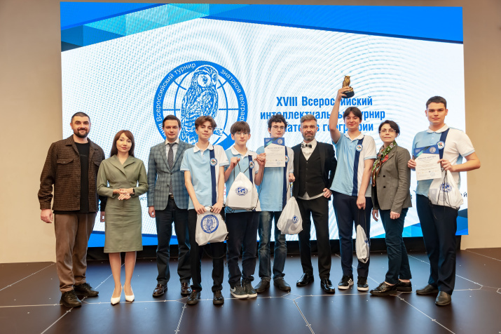 Финал Всероссийского турнира знатоков географии, посвященный 180-летию Русского географического общества, прошел 26 апреля на федеральной территории «Сириус» в отеле-замке «Богатырь». За звание лучших соревновались 17 команд одаренных школьников из Краснодарского и Красноярского краев, Тверской, Нижегородской, Архангельской, Владимирской. Иркутской, Рязанской, Смоленской областей и Ханты-Мансийского автономного округа – Югры. Участники «Геоландии» ответили почти на все вопросы, которые задавал ребятам знаток клуба «Что? Где? Когда?», четырехкратный обладатель приза «Хрустальная сова» Дмитрий Авдеенко.