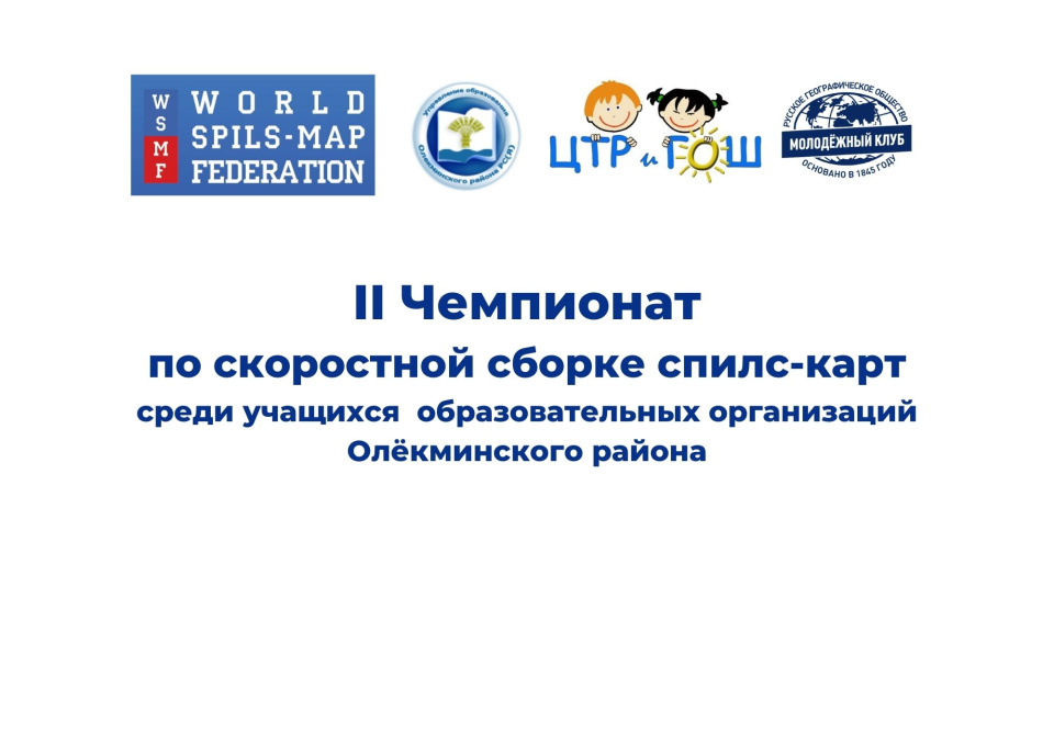 Стоит отметить, что правилами чемпионата определены нормативы по сборке карт: для Олёкминского района - до 1 минуты, Республики Саха (Якутия) – до 4 минут, Российской Федерации – до 7 минут. Стоит отметить, что 23 участника чемпионата, выполнили норматив по сборке спилс-карт и в день чемпионаты им были вручены значок и удостоверение Федеральной программы «Знаю Россию».