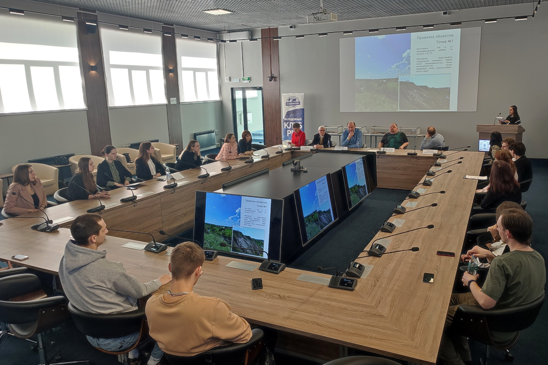 На круглом столе студенты представили результаты исследований: доклады - презентации с демонстрацией геологической коллекции: о неогеновых отложениях на правом берегу реки Челновая в районе села Лысые горы Тамбовского района, о степени антропогенного воздействия горного предприятия открытого типа рельефа в районе Лысогорского карьера строительных материалов, о воздействии эрозии на рельеф на примере геоморфологического памятника Тамбовской области "Сосновские бугры", об особенностях флювиогляциальных отложений на примере Юрловского участка Суренской гряды.