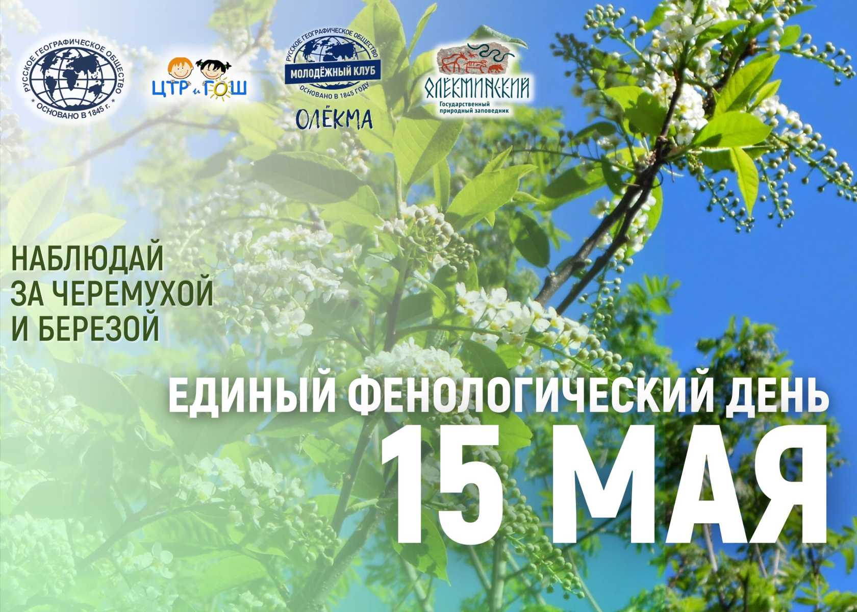 15 мая текущего года по территории всей России стартовала акция "Единый фенологический день". Иницитива проведения акции принадлежит Научно-образовательному Фенологическому Центру Уральского государственного педагогического университета (г. Екатеринбург) и фенологической секции Свердловского отделения Русского географического общества. Уже восьмой год организатором в Республике Саха (Якутия), при поддержке Якутского отделения Русского географического общества, - выступает Центр творческого развития и гуманитарного образования школьников города Олекминска и Молодежный клуб РГО "Олёкма".