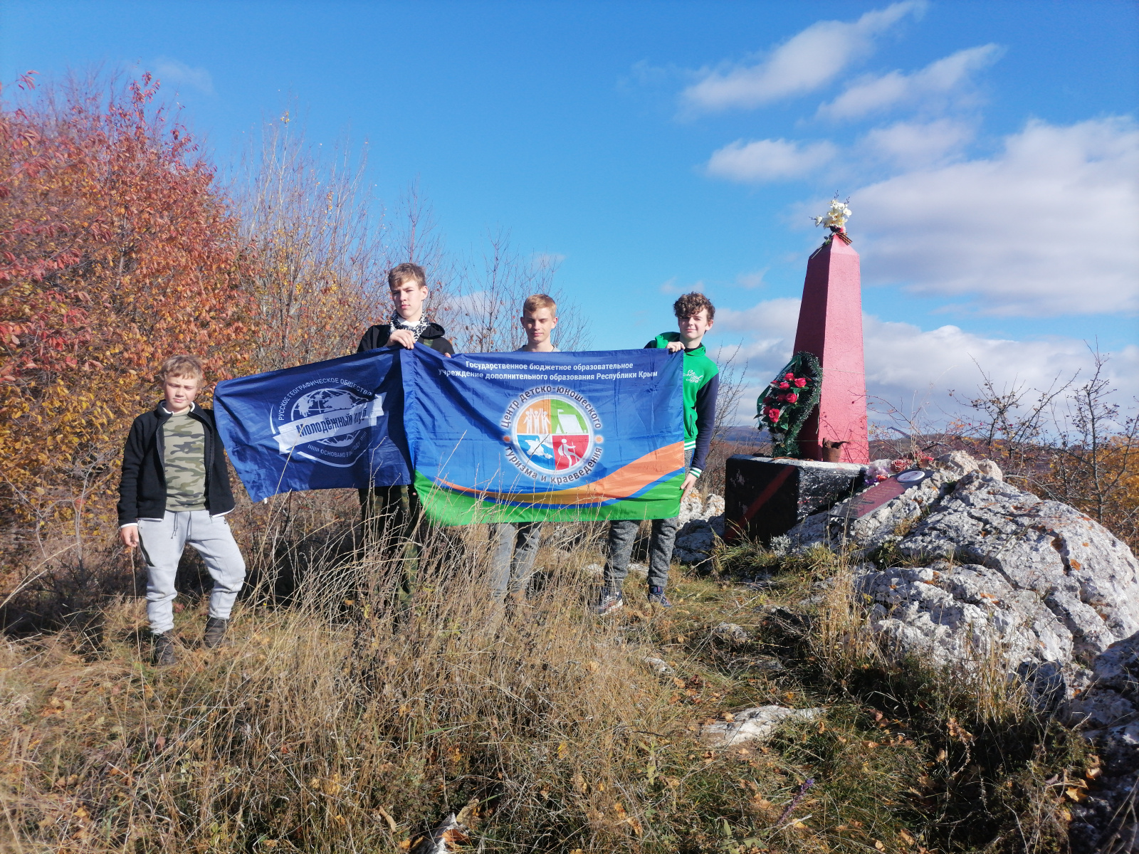 На осенних каникулах активисты Молодежного клуба Крымского отделения РГО - обучающиеся туристского объединения «Пешеходный туризм» совершили поход 2й степени сложности по Горному Крыму. Поход проходил по партизанским местам боевой славы. За четыре дня участники похода прошли 62 километра и посетили 29 памятников партизанам ВОВ, где почтили память погибших в годы войны. Мероприятие прошло в рамках Заповедной школы РГО.