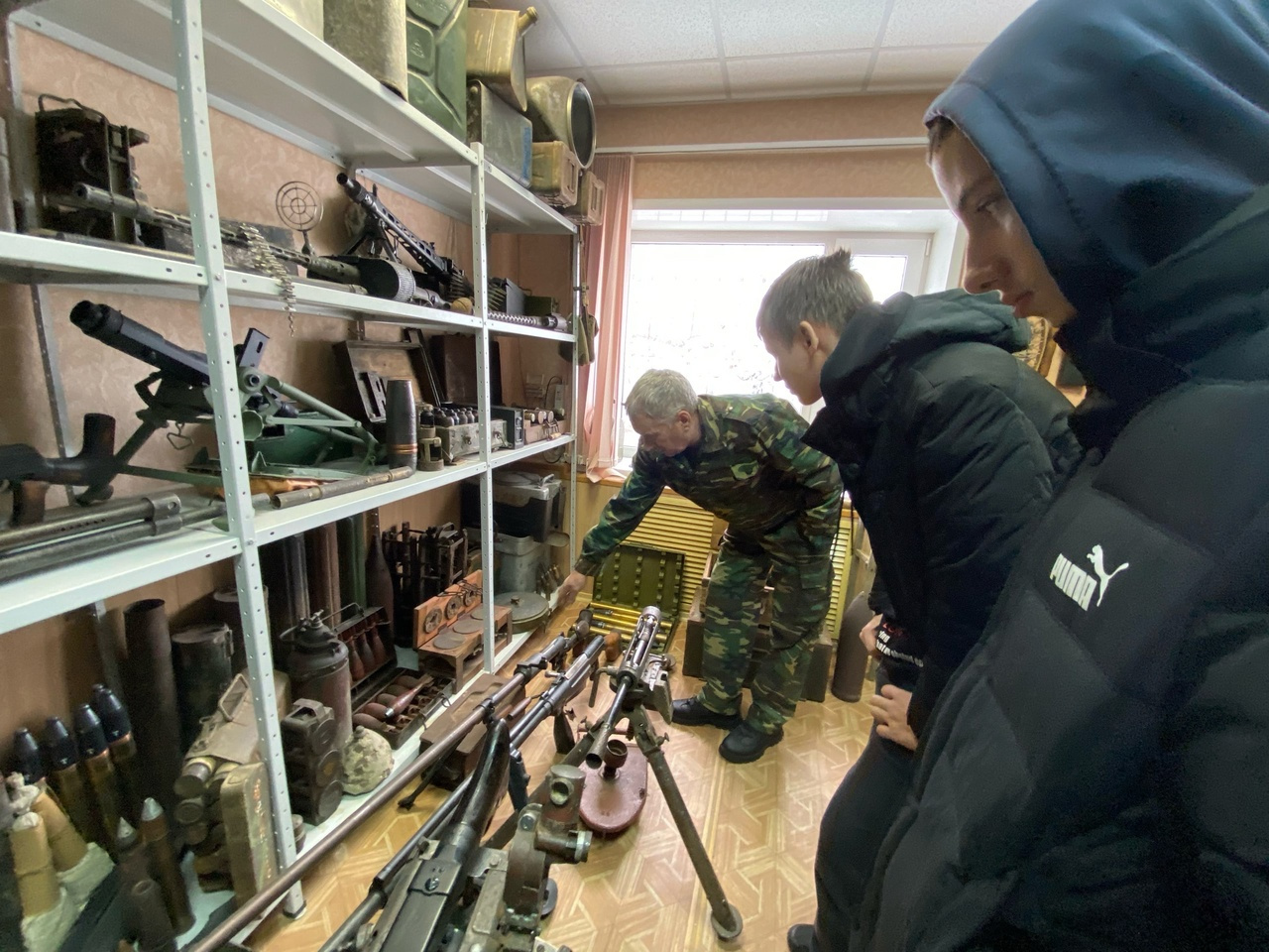 В рамках мероприятия, основатель музея, краевед, поисковик, действительный член РГО и председатель местного отделения Российского военно-исторического общества - Евгений Александрович Куцев, провел образовательно-просветительскую экскурсию по экспозиции музея, включающую в себя экспонаты от древности и до наших дней, обратив особое внимание на настоящие артефакты - оружие и предметы быта, связанные с событиями Великой Отечественной войны на территории нашего города и района, которые вызвали живой интерес у ребят и не оставивших никого равнодушным.