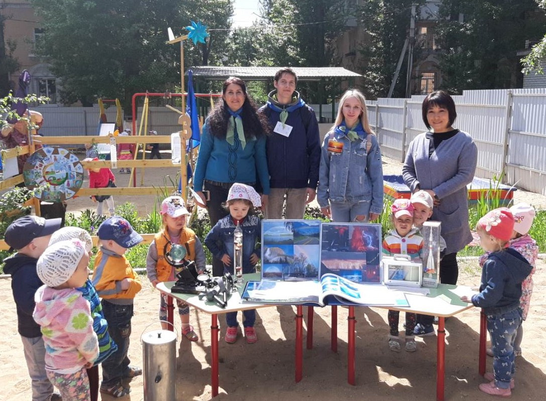 На территории детского сада при методической поддержке активистов Молодежного клуба РГО, студентов и сотрудников географического факультета СГУ два года успешно работает созданная педагогическим коллективом и родителями метеостанция, чтобы дети имели возможность на практике отслеживать изменения погодных условий, пользоваться приборами для определения погоды, наблюдать за признаками, которые указывают на изменения погоды, а также создан клуб "Юный метеоролог".