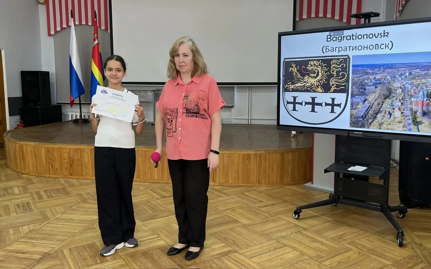 Ученики 6 «Б» класса познакомили участников с историей и достопримечательностями Гурьевского муниципального округа. Ребята из 6 «А» класса представили Багратионовский муниципальный округ, а также провели небольшую викторину для зрителей. Победителем стала Арина Степанишена.