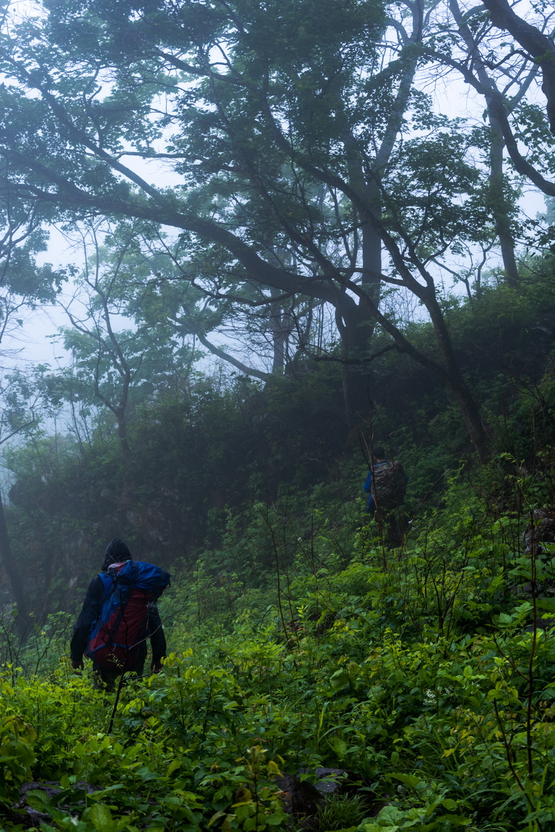 Сильный ливневый дождь, временами застигавший группу в пути, заставил отказаться от прогулки по лезвию хребта из соображений безопасности. Более того, верхнюю часть Чандалаза укутал плотный туман, что гарантированно лишало участников похода возможности осмотреть окрестности с высоты. Однако от посещения пещер ребята решили не отказываться. Путь до них занял чуть больше двух часов.
