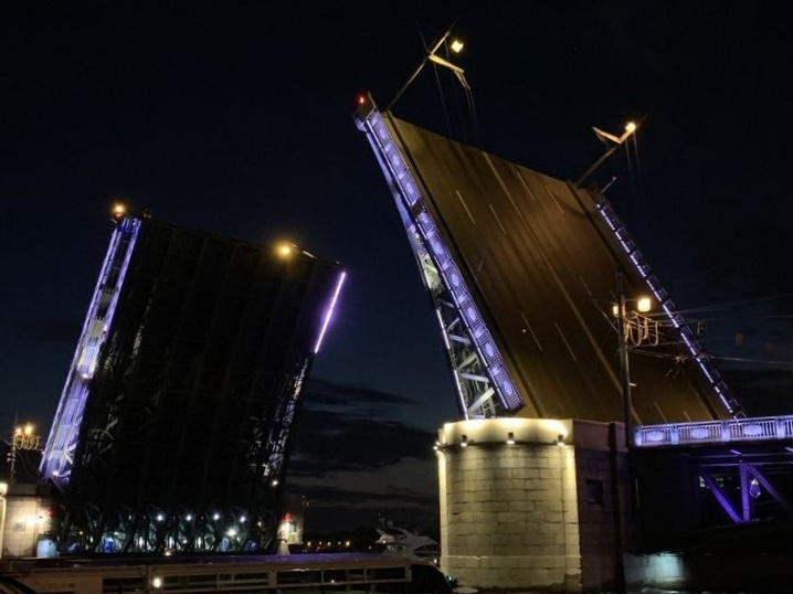 С конца апреля по ноябрь в городе разводят мосты для прохода судов по Неве. Происходит это по ночам. Одним из первых поднимается Дворцовый — в 1:10. Чуть позже Благовещенский, Литейный, а затем Большеохтинский. На набережной в этот момент шумно: торгуют едой, выступают музыканты и уличные артисты.