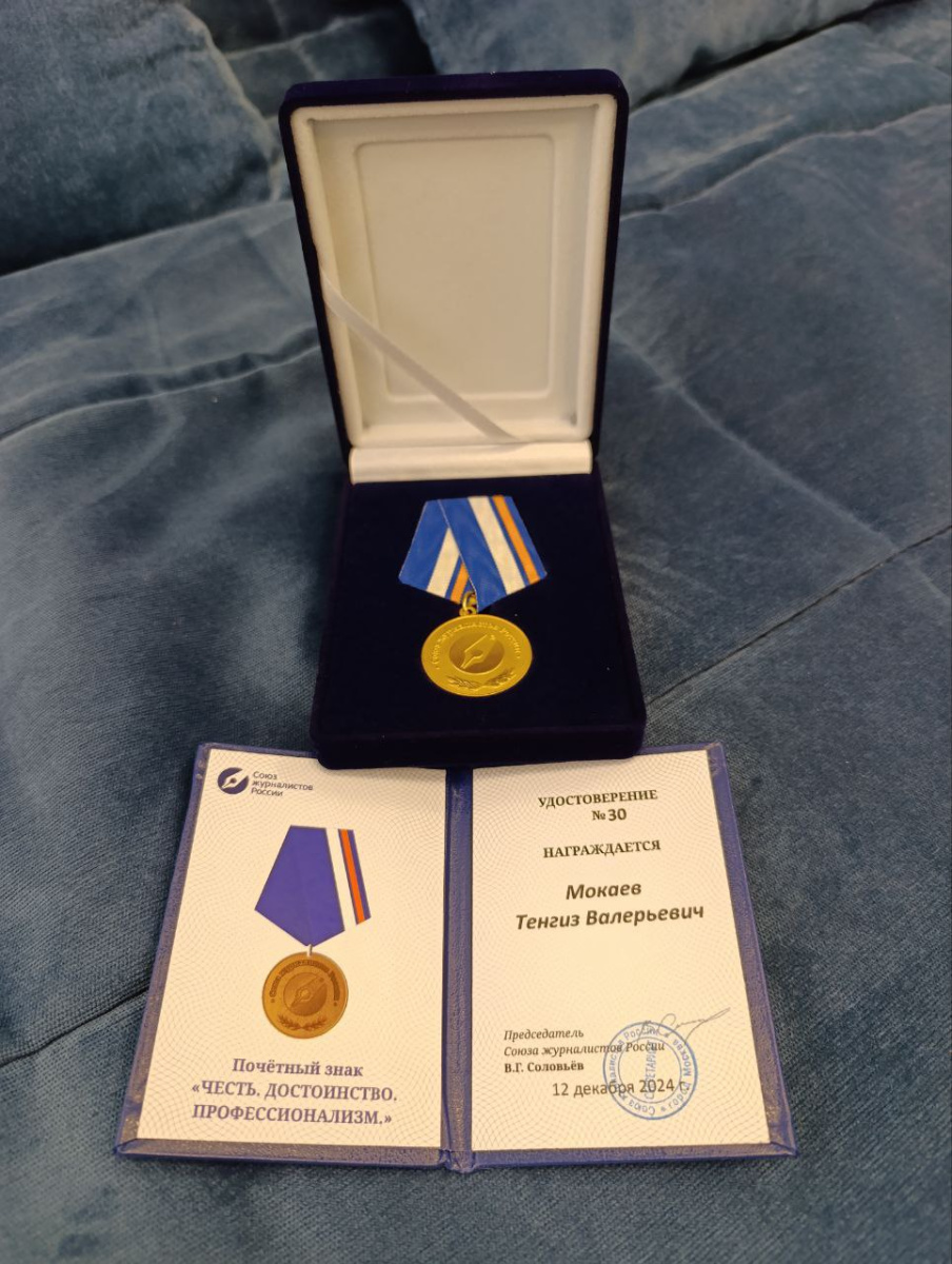 В Союзе журналистов России состоялось вручение золотой медали "Честь. Достоинство. Профессионализм" Руководителю Молодежного центра Русского географического общества Кабардино-Балкарской Республики, журналисту и корреспонденту информационного агентства РИА "Кабардино-Балкария" Тенгизу Мокаеву.