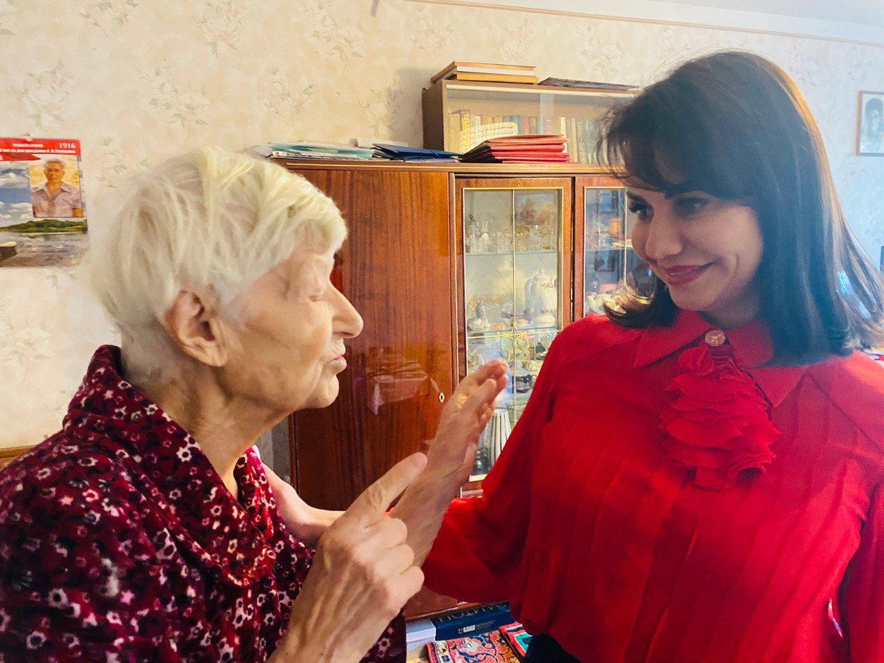 Руководитель Молодежного клуба Ростовского отделения Русского географического общества Наталья Давыдова вместе с директором Ростовского-на-Дону зоопарка Юлия Соболева поздравили с наступающим Новым годом легендарного человека – Клавдию Константиновну Мирошникову.