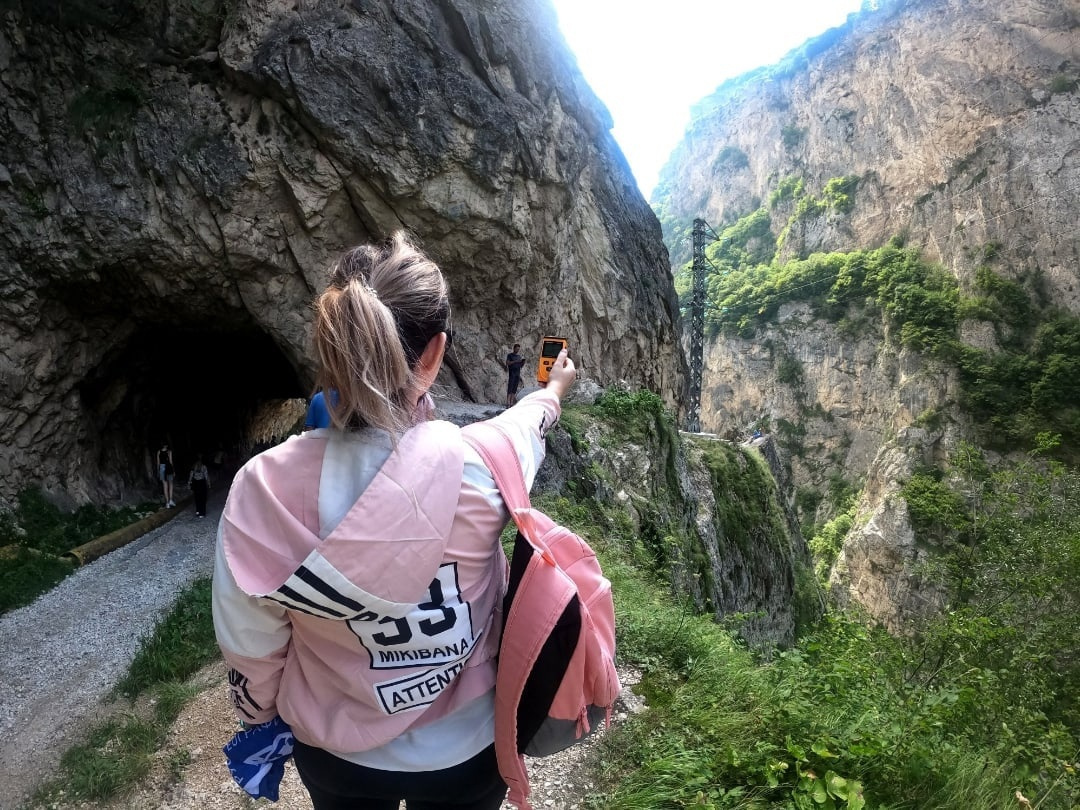В Черекском теснине мы прогулялись по старой балкарской колесной дороге, построенной в конце XIX века. В Черекской теснине два тоннеля. Один длинный, другой короткий. Они совмещены между собой перемычкой, по краю проложена пешеходная тропа. Из длинного есть боковые ответвления, выходящие на Балкарскую общественную колесную дорогу, то есть на пешеходную тропу.