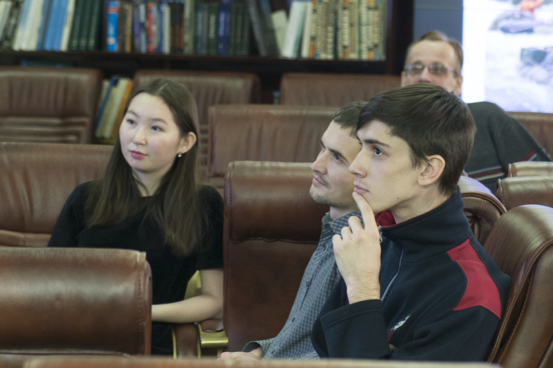Во время заседания своим мнением о том, как привлечь людей к географии, поделились молодые учёные. Юноши и девушки в формате командных дебатов обсудили, как сейчас можно охарактеризовать взаимоотношение науки и общества, какую пользу приносит географ и нужно ли вообще популяризировать географию и для кого.