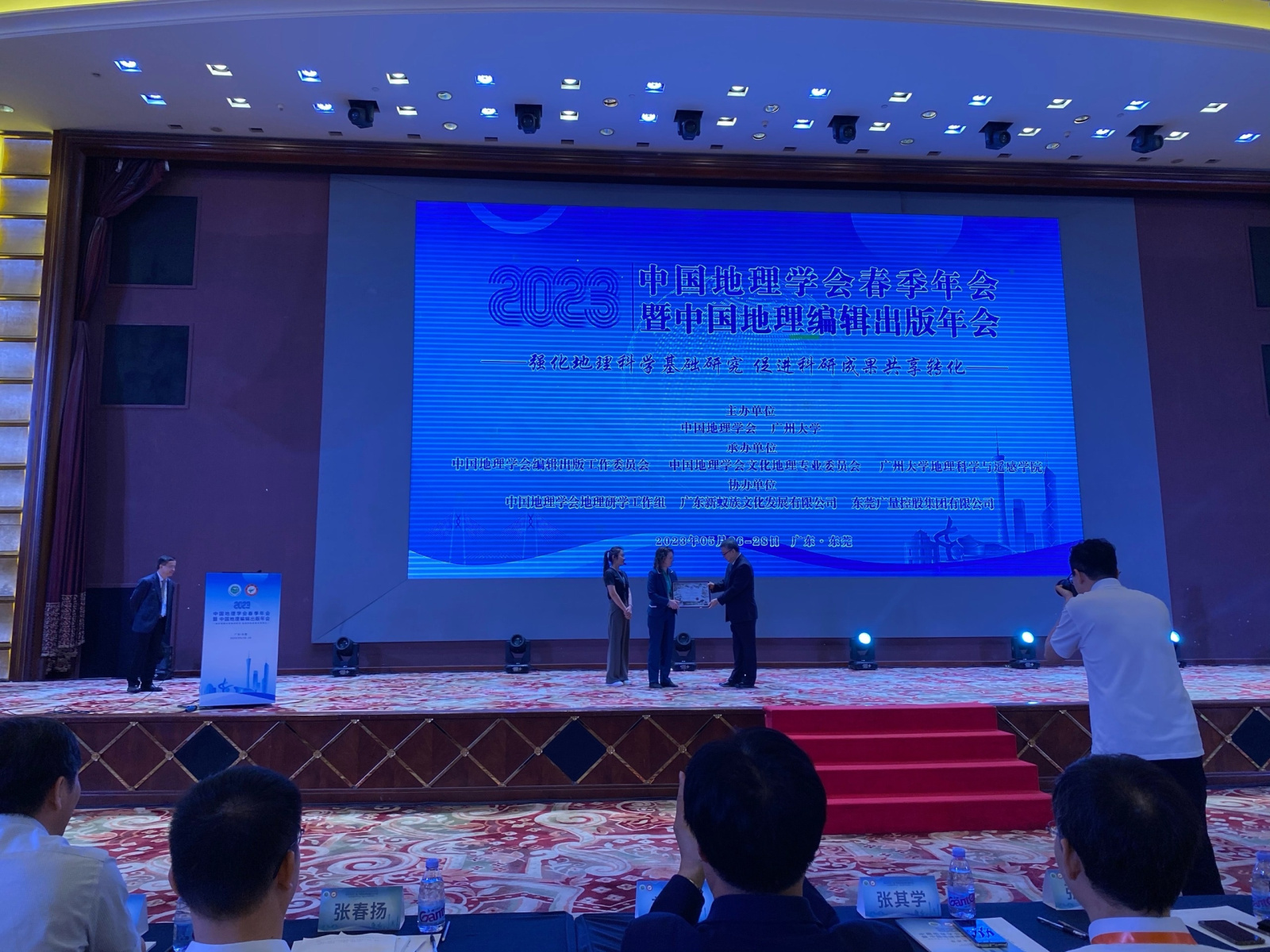 Второй день Научно-просветительской программы РГО в Южном Китае начался с участия команды в Съезде молодых географов, который проходит в городе Дунгуань 26-27 мая. Здесь собрались географы по всего Китая и стран соседей. В рамках съезда прошли различные лекции. Светлана Воробьева, руководитель делегации РГО, вручила почётную грамоту Генеральному секретарю Китайского географического общества Чжан Гою.