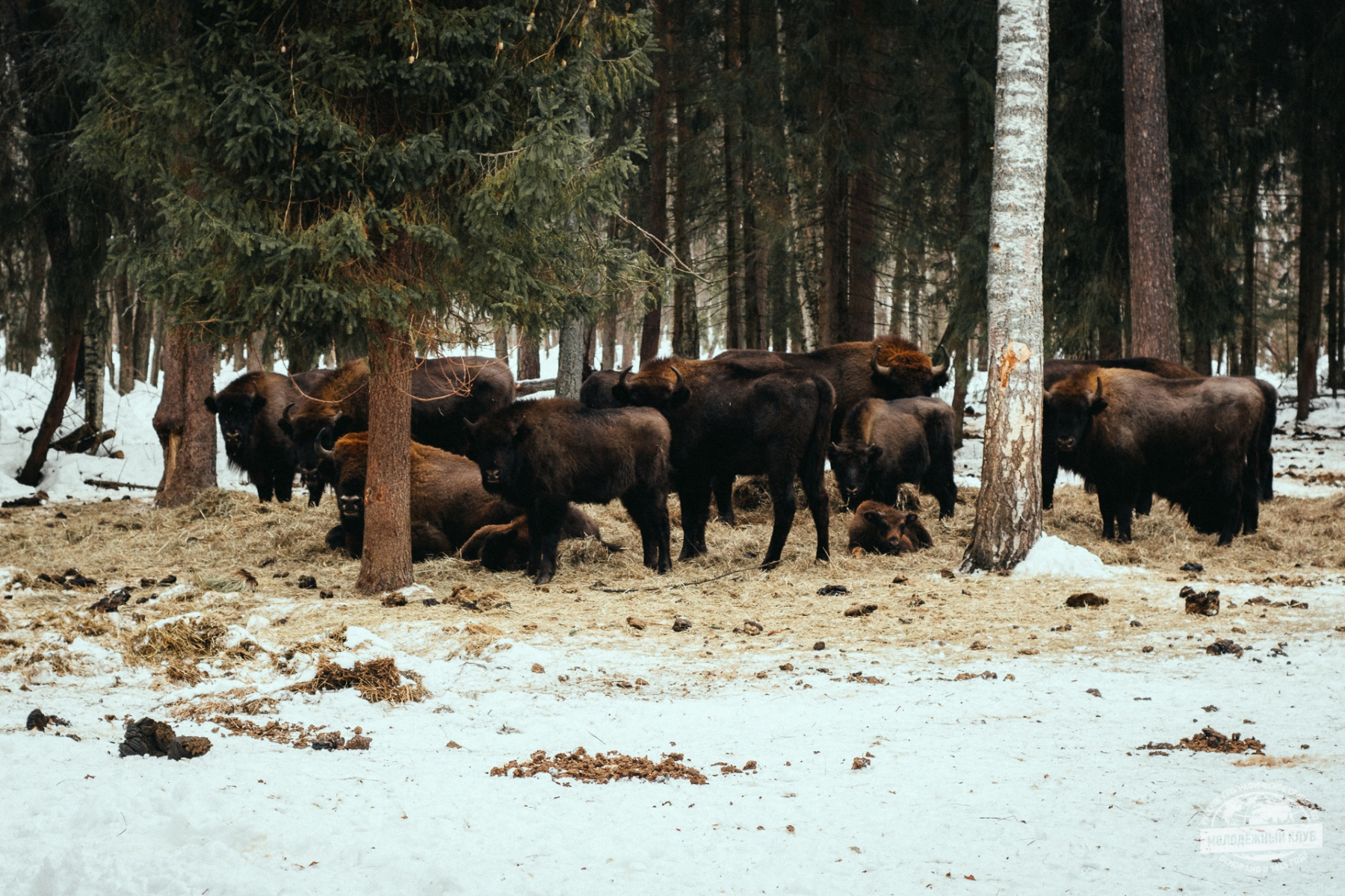 Тысячи лет назад зубр обеспечивал одеждой племена первобытных людей, а теперь этот древний, чудом сохранившийся до наших дней исполин сам нуждается в защите и покровительстве человека. Европейский зубр занесён в Красную книгу Российской Федерации. На территорию заказника этот вид был завезён в 1994 году, со временем животные дали потомство. Со слов экскурсовода, в настоящее время популяция зубра достигла примерно сотни голов. Сотрудники «Дирекции ООПТ» отслеживали жизнь стада, стало известно, что зубры в течение года заказника не покидают, но перемещаются по его территории в поисках питательных кормов. Поэтому в зимний период осуществляется подкормка животных, а активисты получили возможность понаблюдать за этим процессом.