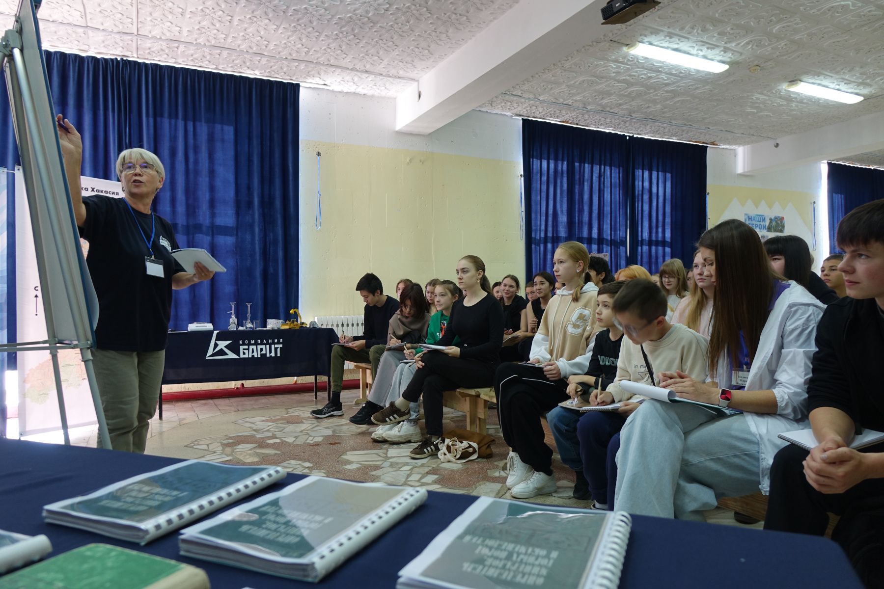Главным событием и настоящим подарком для участников НЕурока стала экскурсия на Толчеинское месторождение барита. Главный геолог Марина Полюхова рассказала ребятам об истории обнаружения данного месторождения, и о процессе формирования барита в недрах Хакасии, как осадочных отложений древнего моря. Также ребята познакомились со спецификой добычи баритовой руды и увидели своими глазами процесс и работу тяжелой техники.