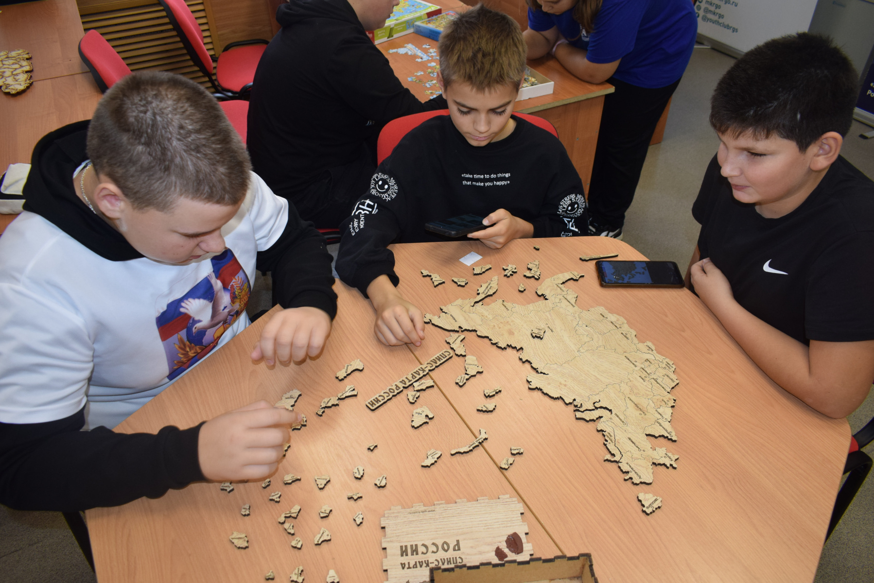 На третьем треке участники посетили тематические мастер-классы, где ребята с удовольствием делали поделки в разных техниках, собирали геопазлы, учились составлять и разгадывать ребусы, играли в настольные и подвижные игры, которые очень популярны у разных народов России и мира.