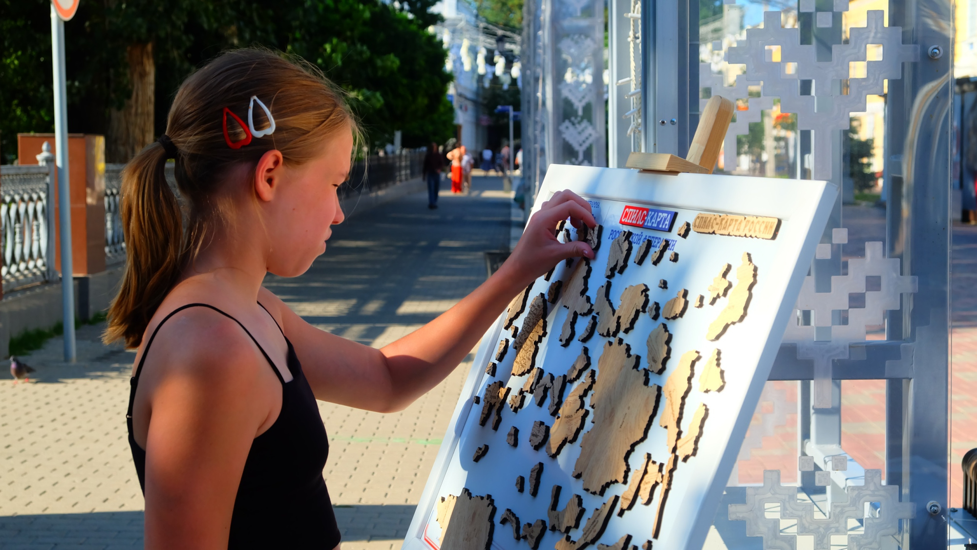 Впервые были представлены оригинальные арт-объекты в виде магнитных пазлов. Каждый пазл - фрагмент космического снимка, покрывающий территории Северного Прикаспия.
