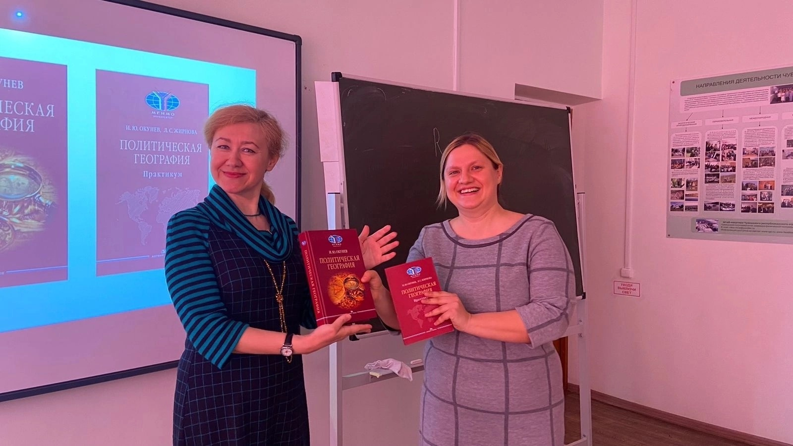 В лекции Лидия Жирнова рассказала о том, как пространство может влиять на развитие общества и как менялись подходы к исследованиям в сфере политической географии. Особый акцент был сделан на то, что владение методами пространственного анализа позволяет выявлять закономерности политических явлений как на глобальном, так и на региональном и локальном уровнях. Были также затронуты основные научные проекты ЦПАМО ИМИ и ключевые направления работы МК РГО Terra Cognita. В рамках встречи Лидия Жирнова вручила доценту кафедры экономической и социальной географии Оксане Василенко удостоверение о повышении квалификации по программе "Политическая география и методы пространственного анализа", проходившей в МГИМО в ноябре прошлого года, и учебные пособия ЦПАМО ИМИ. В ответ гостье были переданы издания специалистов ЧГУ.