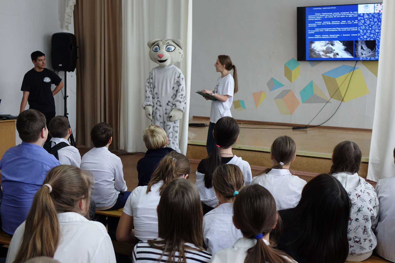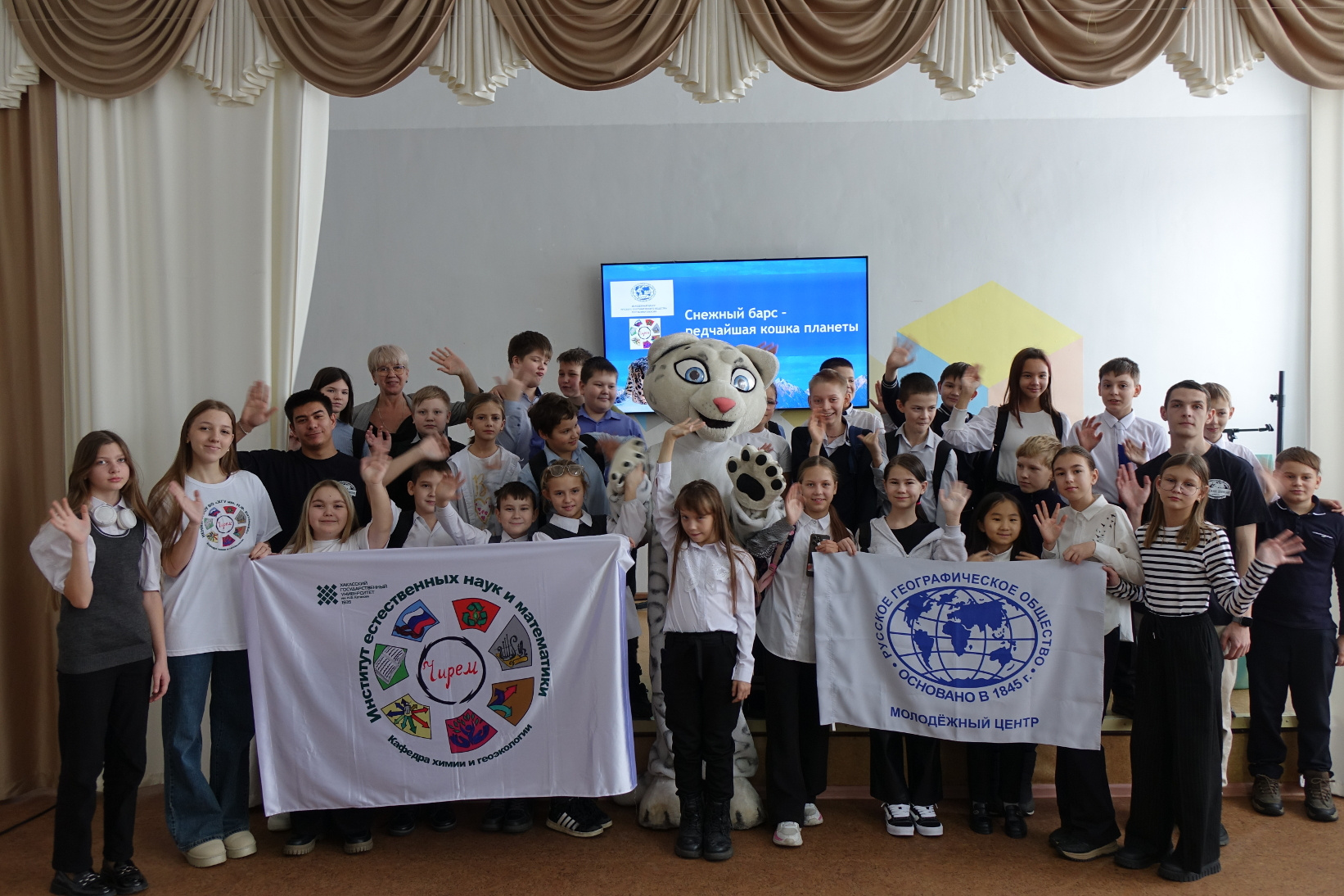 В рамках Международного Дня гор, активисты Молодежного центра РГО Республики Хакасия провели эколого-просветительское мероприятие «Ирбис – житель снежных гор». Участниками тематического мероприятия стали учащиеся 5 и 6 классов Подсиненской средней школы, студенты и педагоги Хакасского государственного университета имени Н.Ф. Катанова и сотрудники заповедника «Хакасский».