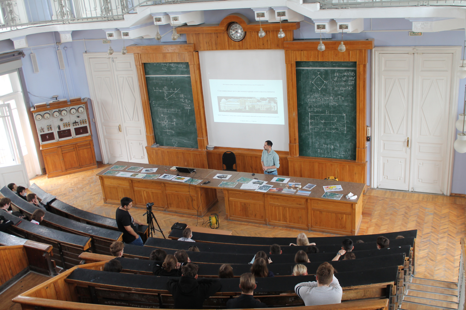 В День космонавтики, 12 апреля, в Большой физической аудитории III корпуса Саратовского государственного университета имени Н.Г. Чернышевского состоялась лекция и мастер-класс по спутниковой метеорологии. Встречу для студентов и школьников Саратова на площадке фестиваля "Гагарин.Doc" провел руководитель Молодёжного клуба РГО в Саратове, заведующий кафедрой метеорологии и климатологии СГУ Максим Червяков.