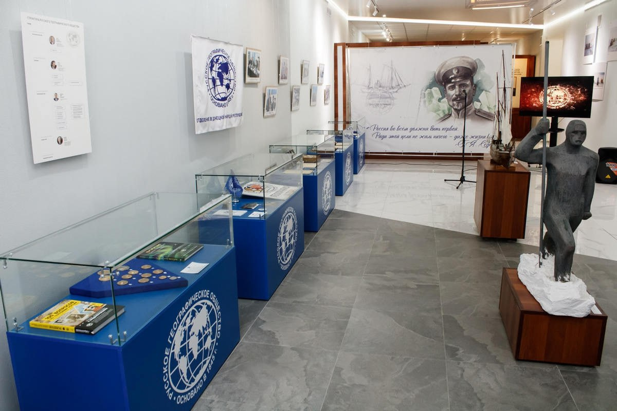 Отдельный раздел экспозиции посвящён деятельности Донецкого отделения Русского географического общества, открытого в 2023 году. Отделение активно реализует акции «Географический диктант», «НЕурок географии», викторины и культурно-просветительские программы, способствующие формированию гражданской идентичности и интереса к истории России.