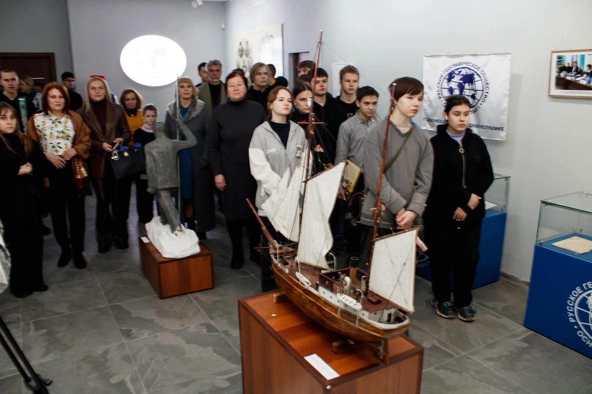 Познавательную прогулку по экспозиции провела Руководитель Молодёжного центра Русского географического общества Донецкой Народной Республики, кандидат педагогических наук Анна Ефимова. Она напомнила гостям о знаменательной дате основания Общества, когда император Николай I утвердил представление министра внутренних дел графа Льва Перовского. Инициатором создания РГО стал адмирал Фёдор Литке — выдающийся мореплаватель и будущий президент Императорской академии наук.