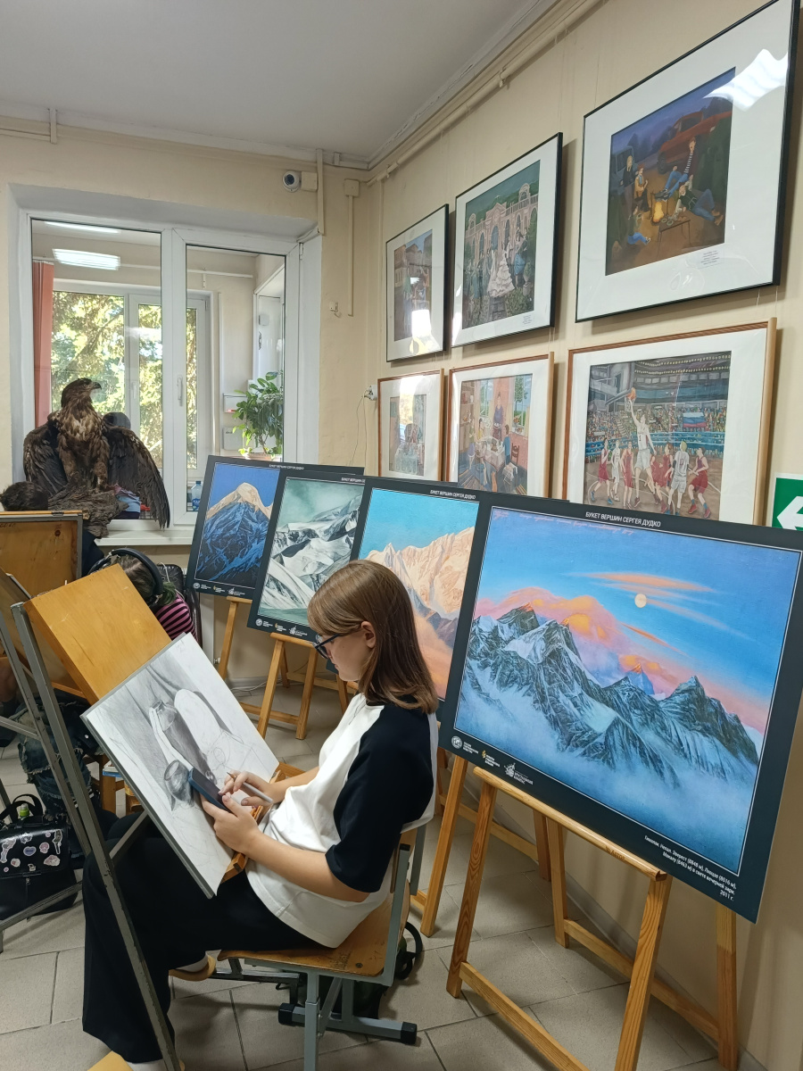 На открытие выставки пришли активисты Молодёжного клуба РГО “ЭКОСфера”, учащиеся и педагоги художественной школы. Открыла мероприятие директор учреждения, активист МК РГО «ЭКОСфера» Аделия Белоусова.