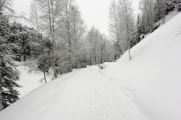 Туристы посетили Алгуйский водопад, расположенный между подножьем хребта Тигер-Тыш и реки Амзас, изучили следы местной таежной фауны, а также горные склоны и узнали об образовании смертельных лавин, представляющих собой наибольшую опасность во время зимнего туризма.