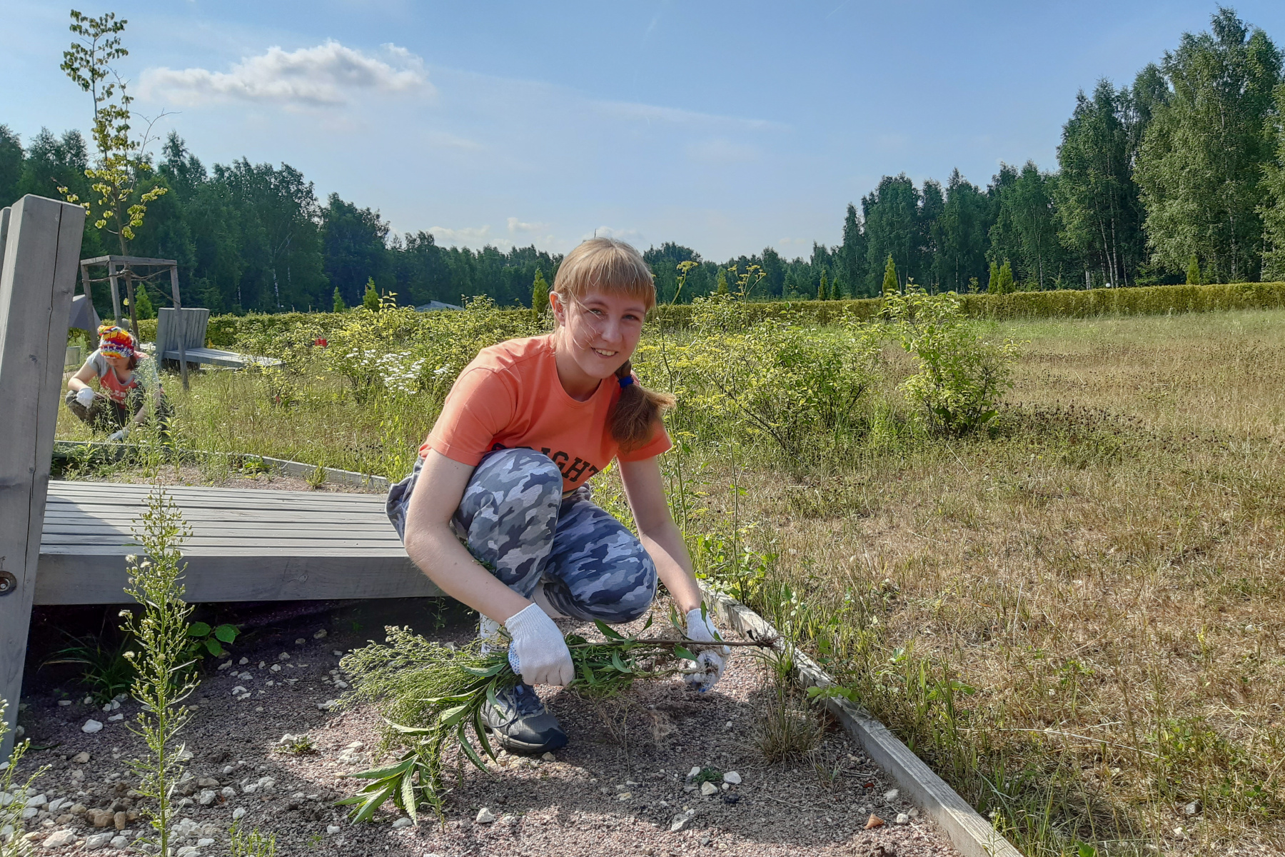 В первый день волонтёры помогли прополоть «живой лабиринт» в Дендрарии – вывезли 20 мешков сорняков. В благодарность сотрудники национального парка провели познавательную экскурсию по экспозиции «Леса России» и рассказали о видовом разнообразии растительности различных природных зон нашей страны.