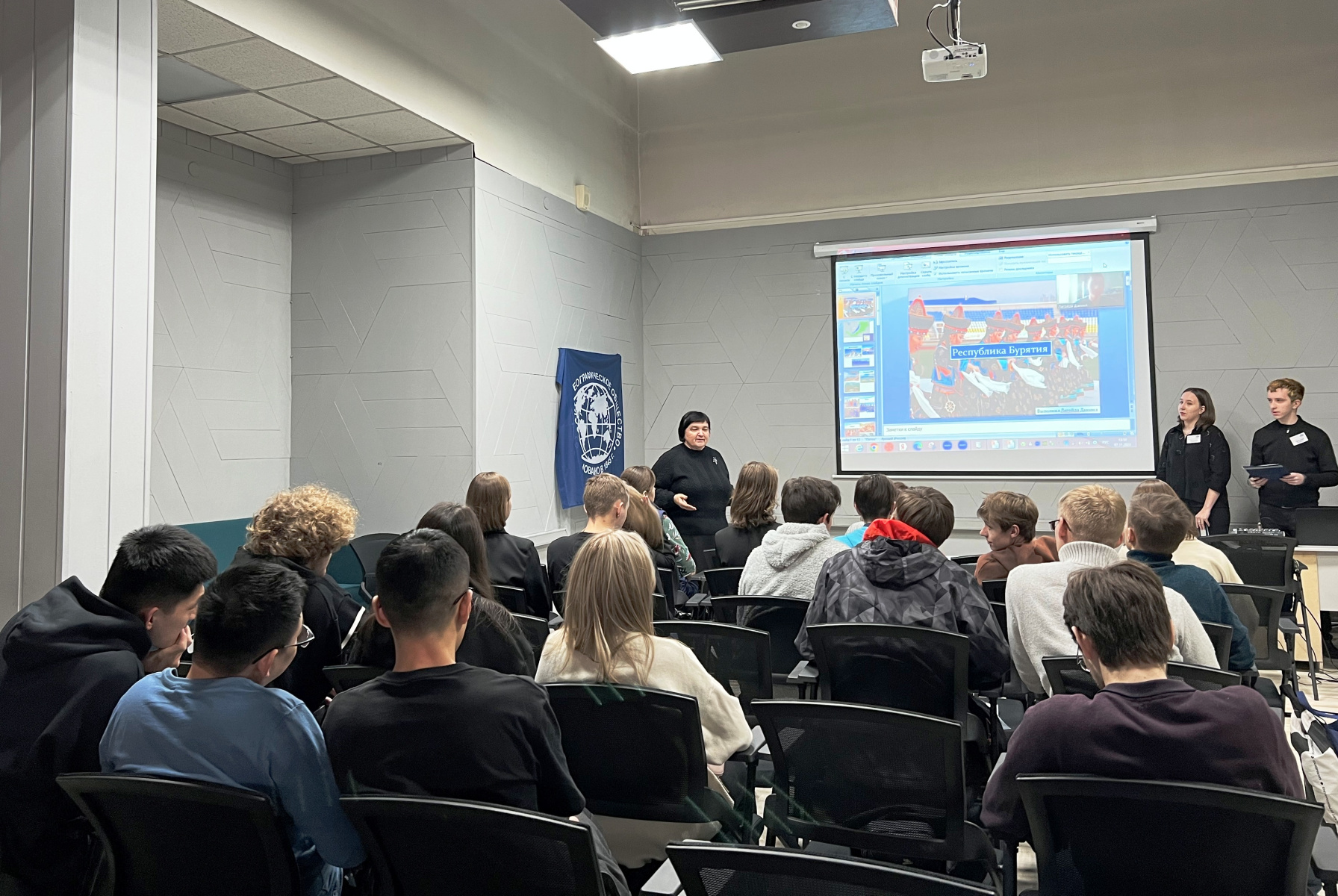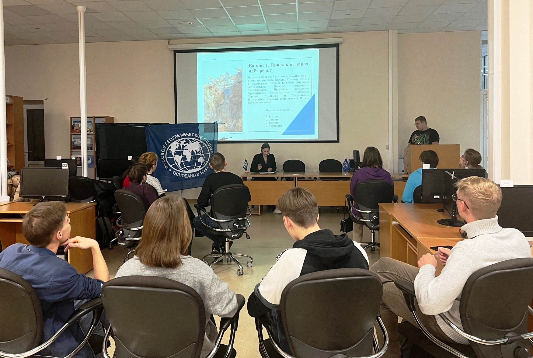 7 ноября прошла мини-конференция "Этнографическая картина России и сопредельных стран". Мероприятие было посвящено углублению и расширению представлений об этнической истории и культуре народов России и сопредельных стран в контексте современного социально-экономического развития, изучению вопросов социальных отношений и хозяйственного освоения. В начале слушателям был представлен обзорный фильм о народах, населяющих территорию России, затем участники представили доклады о своих родных регионах, культуре, традициях и обычаях проживающего там населения. Отдельное внимание было уделено этнокультурным особенностям народов, проживающих на территории национальных республик России и Казахстана.