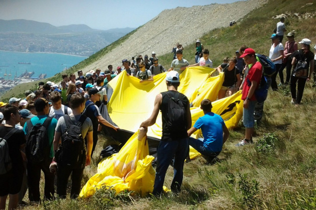 Молодежным клубом РГО на базе Новороссийского отделения Общества в Краснодарском крае была проведена акция «Мы дети Кубани», в которой приняли участие более 100 школьников со всего Новороссийска. Ребята поднялись на Маркхотский хребет к братской могиле, затем развернули на склоне флаг города-героя размером 20 на 10 метров – процесс был заснят на камеру квадрокоптера.