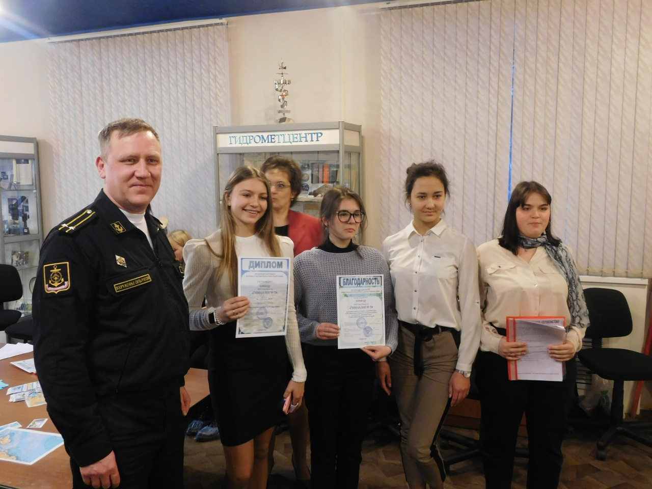 О влиянии погоды и осадков на весь окружающий мир рассказала начальник гидрометцентра Сиеккинен Елена Дмитриевна, а о том, как фиксируются изменения части гидросферы - мирового океана, вызванные изменениями погоды, и, в частности, глобальным потеплением, сделал доклад старший офицер отдела снабжения и оборудования Гидрографической службы Северного флота Зубарев Александр Александрович. Он ответил на вопросы ребят, рассказал много морских баек.