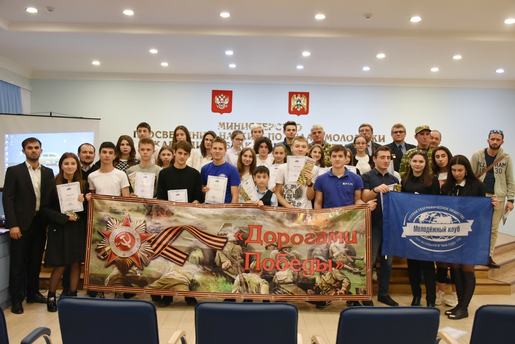 В Министерстве просвещения, науки и по делам молодежи КБР прошла презентация итогов молодежного, патриотического проекта «Блог-тур «Дорогами Победы», в рамках которой состоялась встреча молодежи с представителями поискового движения, а также награждение участников проекта дипломами и благодарностями.