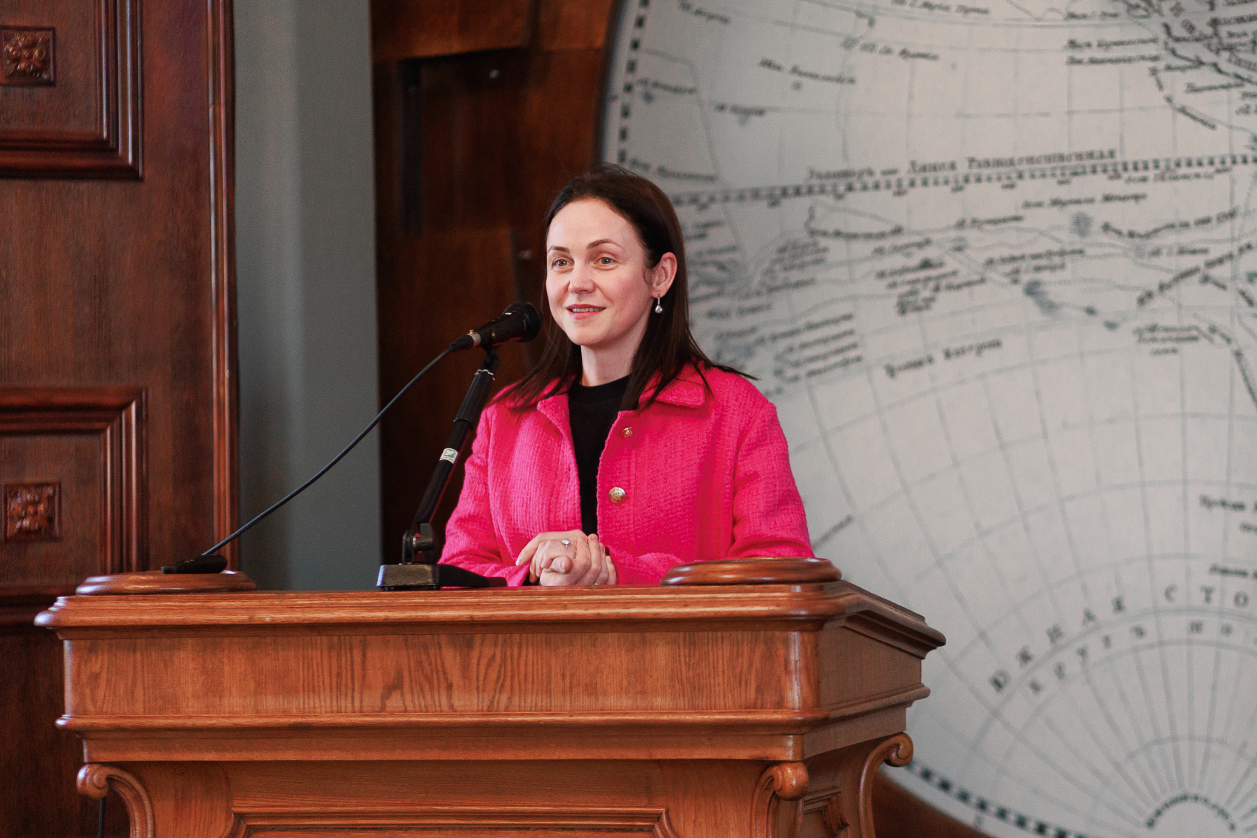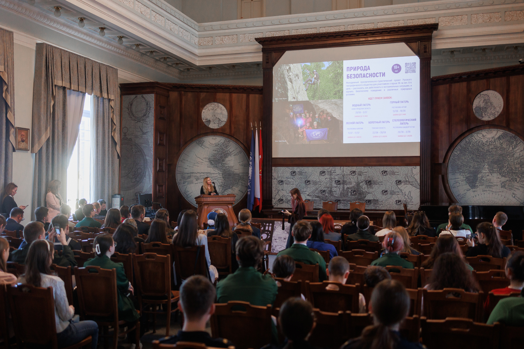 Молодёжное движение представила директор Департамента по работе с молодёжью Исполнительной дирекции РГО Яна Федосова. Она рассказала об основных направлениях деятельности и ключевых проектах Движения. В выступлении было отмечено, что в 2026 году Молодёжное движение РГО отмечает 10-летие своей деятельности. За это время Движение стало масштабной платформой, объединяющей активную молодёжь со всей страны и за её пределами и реализующей десятки просветительских, научных и добровольческих проектов, включая профильные смены в детских лагерях.