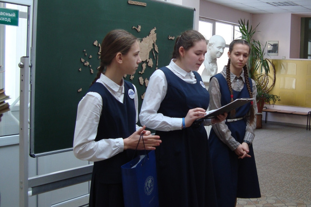 В этот же день на трёх переменах активисты Молодёжного клуба РГО провели для учеников школы географические викторины, загадывали детям шарады, ребусы. К примеру, викторину о полярных медведях провела активистка Ксения Ганоченко. Мальчишки и девчонки пытались угадать, почему полярные медведи с годами приобретают желтый оттенок шерсти, сколько хищник может съесть за одну кормежку, что угрожает косолапым в природе и многое другое.