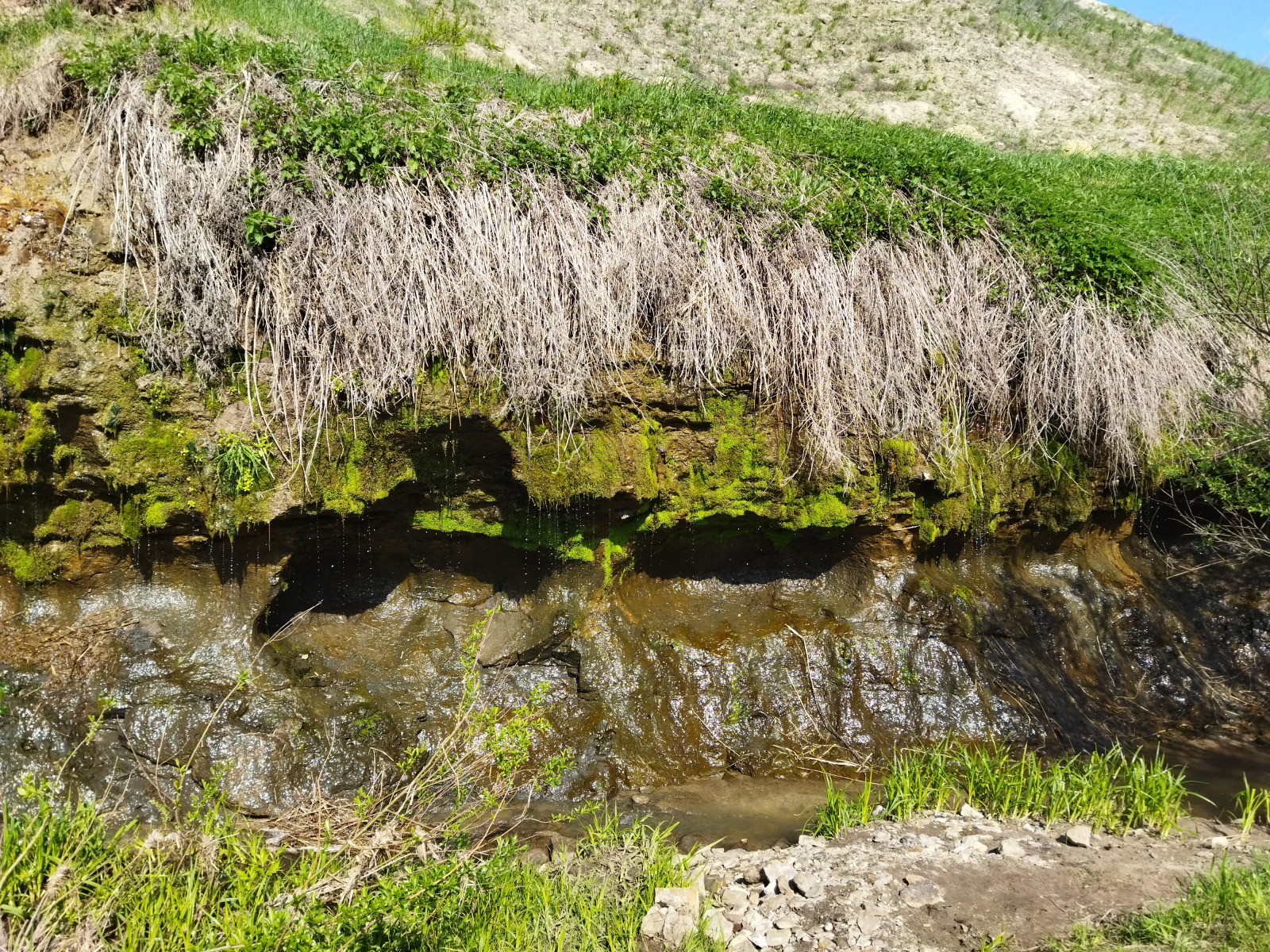 Продолжая обследовать туристические достопримечательности области, путешественники посетили родник "Стена плача", расположенный недалеко от села Гремячка Новобурасского района. В этом живописном месте рельеф изрезан многочисленными оврагами. В одном из них берет свое начало речка Гремячка, а из-под верхнего слоя земли по довольно большой ширине склона (более десяти метров) выходит на поверхность вода и стекает вниз тонкими струйками.