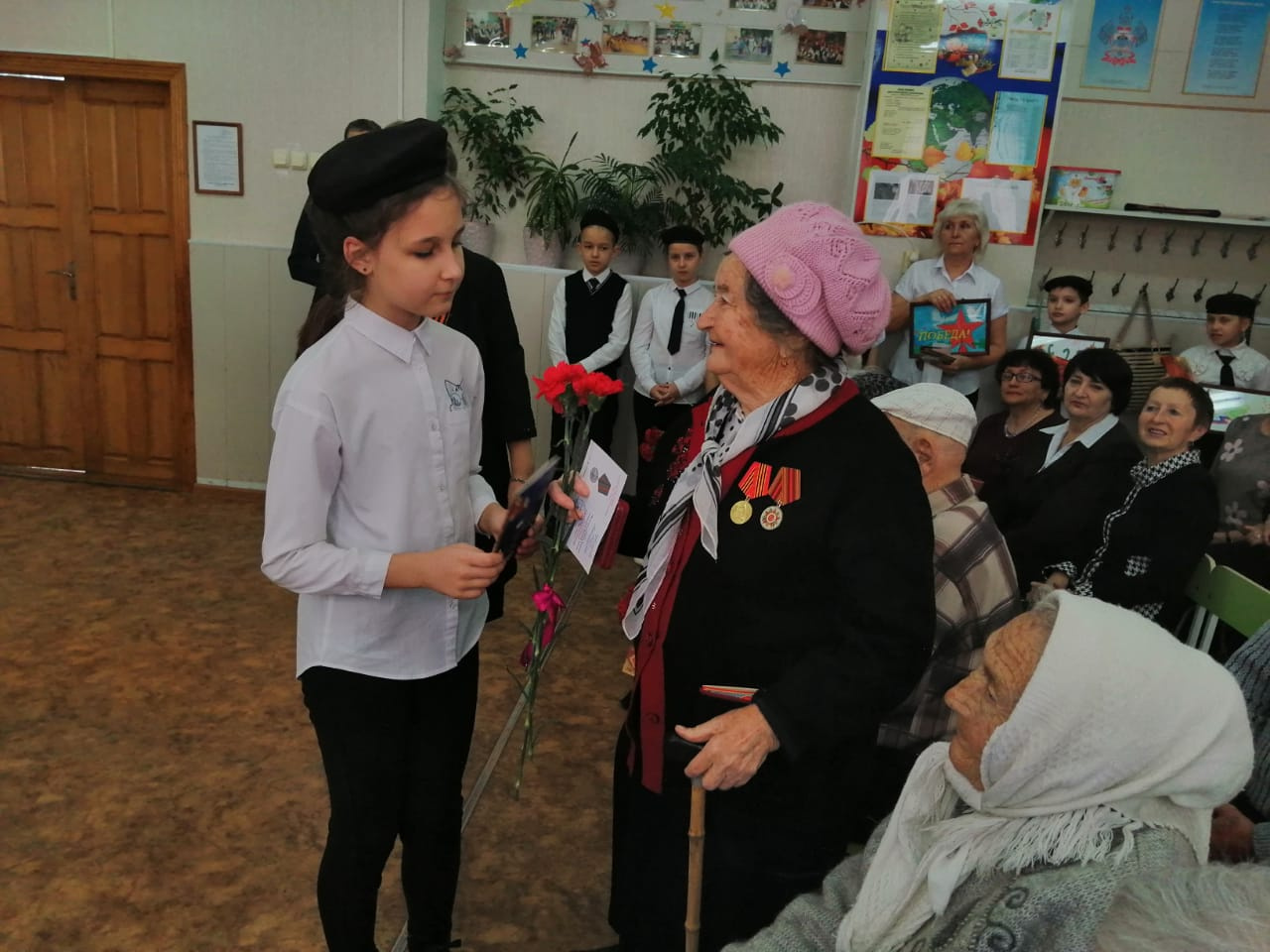 «Хотим поблагодарить наших уважаемых ветеранов. Вы являетесь великой гордостью, эталоном и примером для подражания. Вы внесли несоизмеримую лепту в развитие и жизнь нашей великой страны. Мужество, самоотверженность, сила духа советского народа, сплотившегося во имя мира на земле и независимости Родины, являются героическим примером для нынешнего и будущих поколений россиян. Мы в неоплатном долгу перед нашими ветеранами, освободившими планету от бремени фашизма. Желаем вам здоровья и долголетия, чтобы вы своим примером всегда ставили ориентиры для молодежи. Сердечное вам, спасибо», — подвела итог мероприятию член Совета ветеранов, член РГО Колесникова Валентина.
