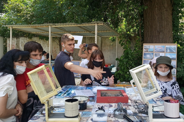 Особую заинтересованность у ребят вызвали также тематические выставки с образцами полезных ископаемых и других природных находок, привезенных студентами и сотрудниками географического факультета СГУ. Песок из пустыни Сахара, глеевые почвы Ямала и другие уникальные образцы минералов и грунта не оставили никого равнодушным!