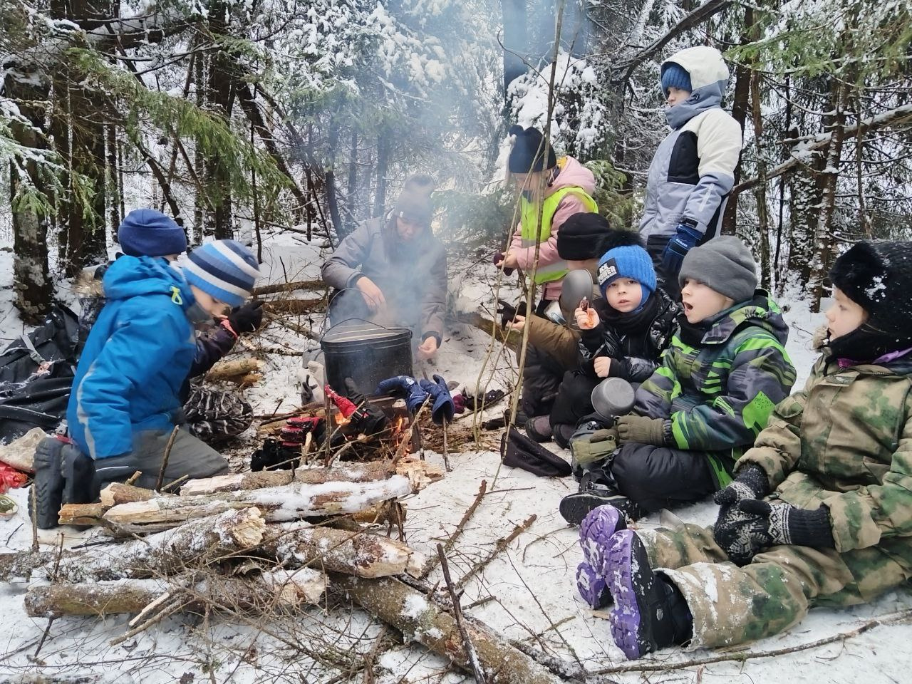 Младшая группа воспитанников Молодёжного клуба РГО «Дикие тропы» провела учебно-тренировочный поход по зимнему лесу.