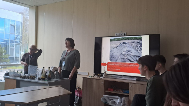 Педагоги Эколого-биологического центра Темрюкского района Людмила Жулей и Татьяна Иванова в рамках мастер-класса "Живая Земля" показали юным географам разницу между грязевым и лавовым вулканом. Также они продемонстрировали участникам занятия археологические находки, обнаруженные на территории Таманского полуострова в районах грязевулканической деятельности.