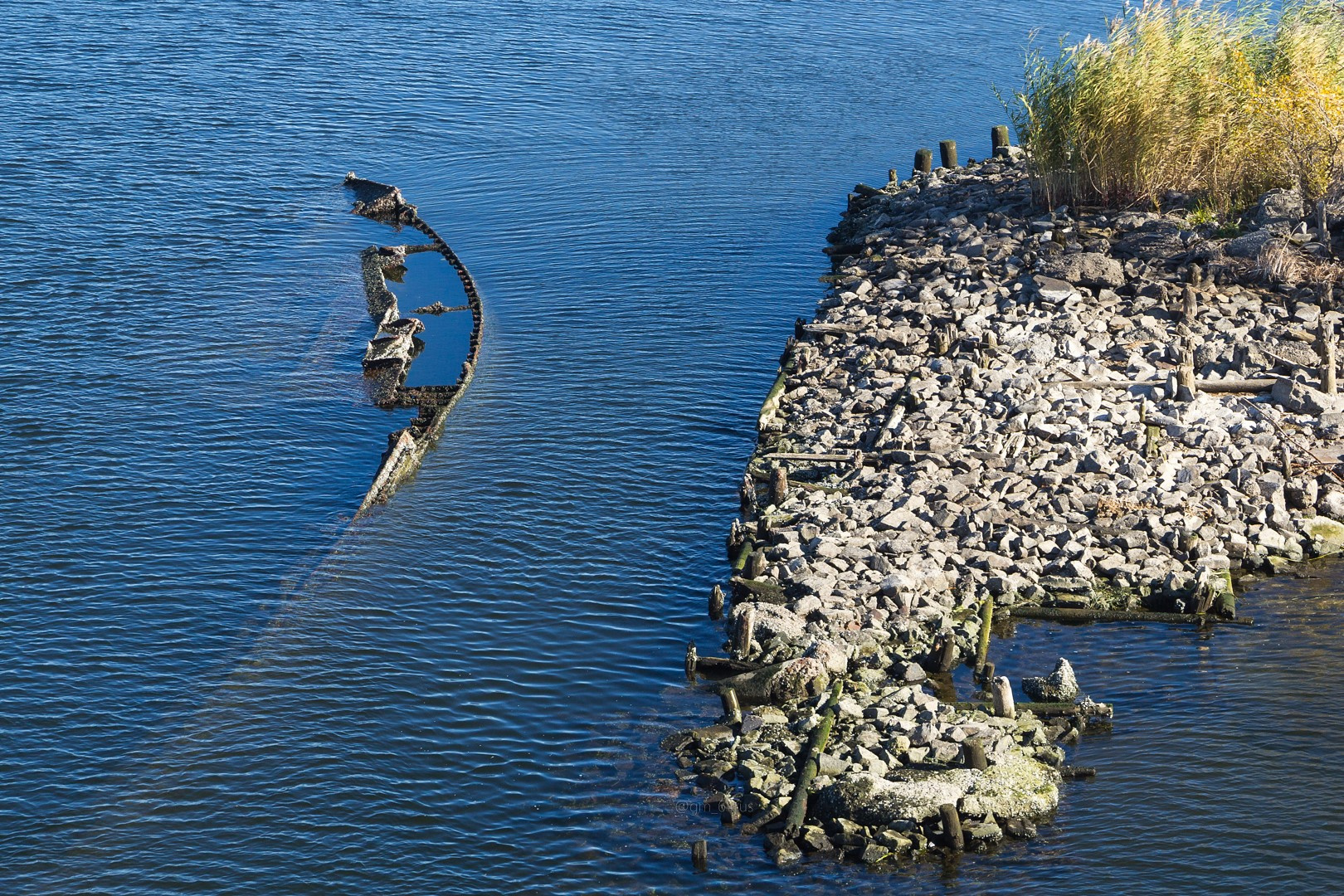 Историей "Саратовского ледокола" я интересуюсь с 9 лет. Мне, будучи любителем водного транспорта и некогда активистом музея речного флота г. Саратова, удалось за прошедшие годы узнать много интересного об этом уникальном судне, пообщаться с людьми, так или иначе связанными с темой ледокола. Я застал тот период, когда в саратовских СМИ практически каждый (если не каждый) день писали о том, что "Саратовский ледокол" будет поднят со дна Волги, восстановлен, установлен в Саратове. С тех пор прошло около 8 лет, корпус ледокола по-прежнему находится на своём месте. За несколько лет я ни разу не видел даже очертаний "Саратовского ледокола", а нынешние реалии позволили увидеть не только очертания, но и небольшую часть корпуса легендарного судна. Мне удалось подобрать максимально удачные условия для наблюдения и съёмки – солнечная, относительно безветренная погода, низкий уровень воды, который, как я уже писал выше, 22 октября составлял всего лишь 13,49 м. Ещё лучше корпус ледокола увидеть не удастся, так как он лежит с креном, а кроме того, носовая часть лежит на грунте выше, чем кормовая.