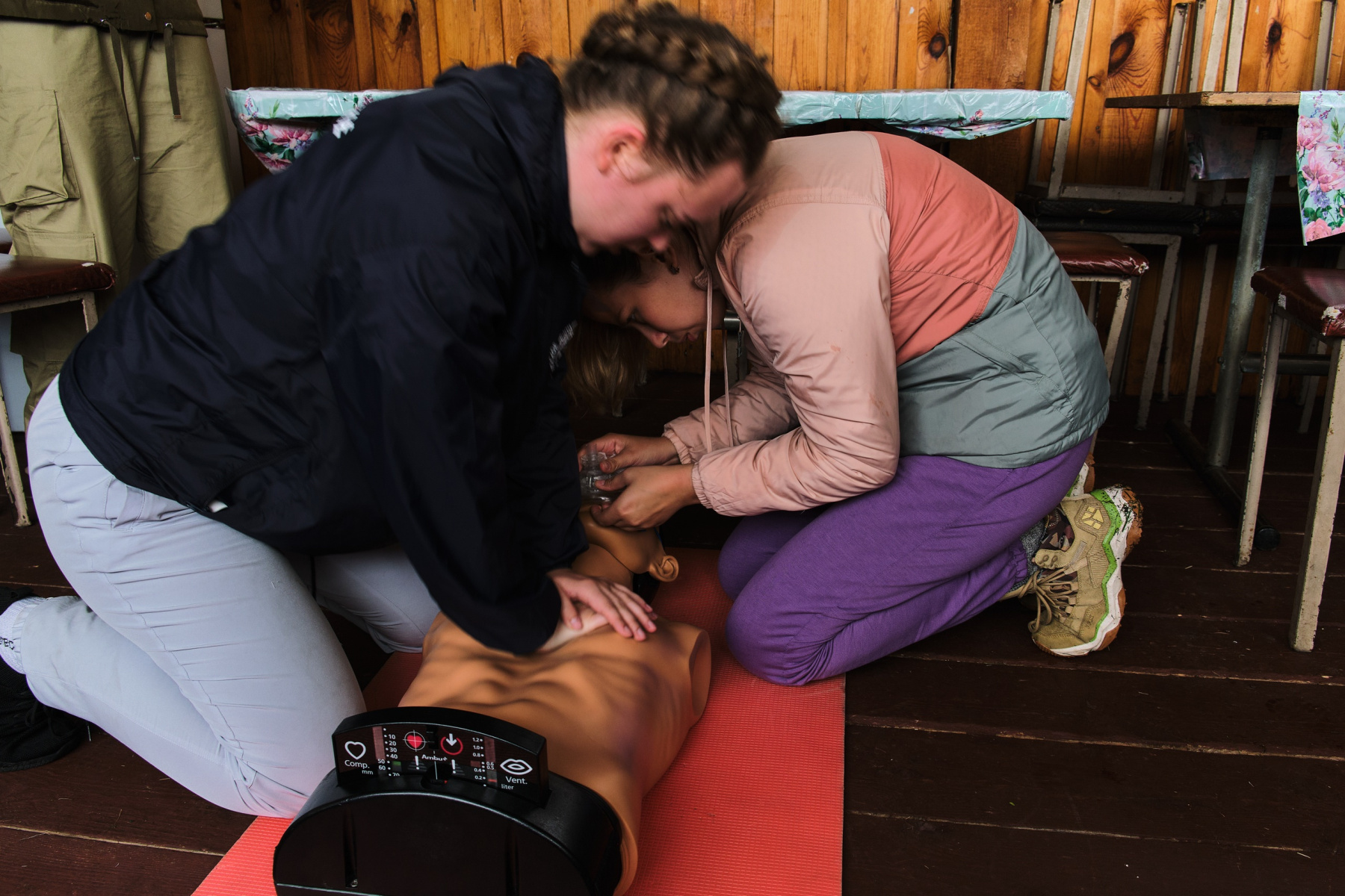 Под руководством Андрея Бобкова, спасателя 3-го класса, преподавателя Центра подготовки спасателей Байкальского поисково-спасательного отряда МЧС России им. А.И. Степанова, подробно рассмотрели правила проведения сердечно-лёгочной реанимации, разобрали алгоритмы действий при различных травмах и состояниях: от банальных порезов и ссадин, до серьезных переломов, кровотечений и шока. Особое внимание уделили специфике оказания первой помощи в условиях автономии, где нет доступа к квалифицированной медицинской помощи и приходится полагаться только на свои знания и умения.