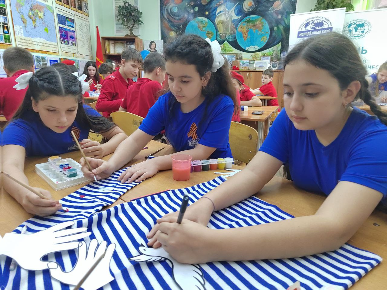 Члены Брюховецкого отделения КРОРГО— Алла Любченко и Галина Гроссевич рассказали ребятам о мужестве и героизме наших солдат, об их подвигах и патриотизме, а также вспомнили имена односельчан, которые принимают участие в специальной военной операции. На тельняшках, предназначенных для бойцов СВО, школьники оставили свои автографы и рисунки. Это было сделано для того, чтобы выразить поддержку российским военнослужащим, которые каждый день демонстрируют героизм и силу, и показать единство и сплоченность всего нашего народа в борьбе с нацизмом.Тельняшки, как талисманы удачи, вместе с письмами ребят будут отправлены военнослужащим, которые каждый день рискуют жизнью ради мира в нашей стране.