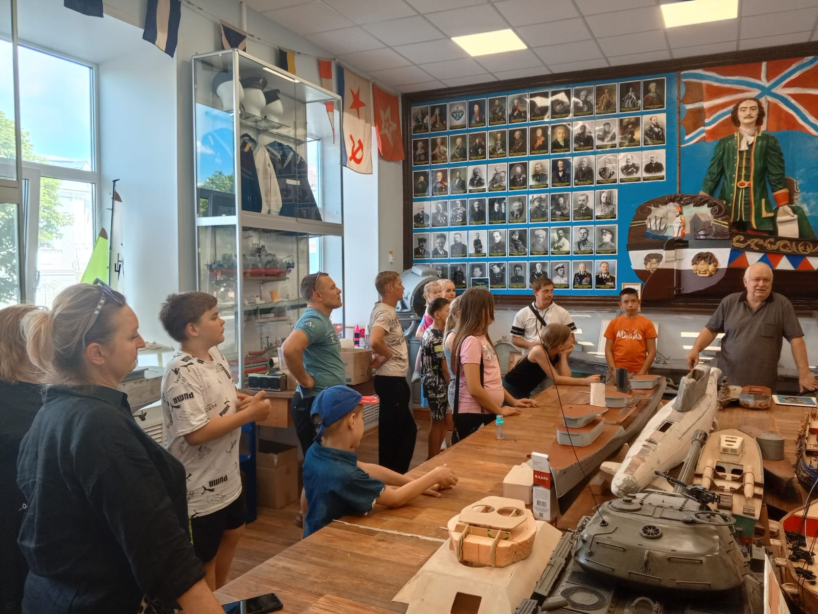 Во второй части мероприятия все присутствовавшие посетили Музей Российского флота, основанный и существующий на базе Станции юных техников с 1995 года, где в рамках образовательной экскурсии смогли ознакомиться с многочисленными судомоделями и подлинными экспонатами - знаками отличия и различия, флагами ВМФ и корабельными приборами, в том числе – якорем и ядрами Петровской эпохи, а также коллекцией обитателей морей и океанов, среди которых - даже китовый ус!, которые очень заинтересовали активистов и не оставили никого равнодушным.